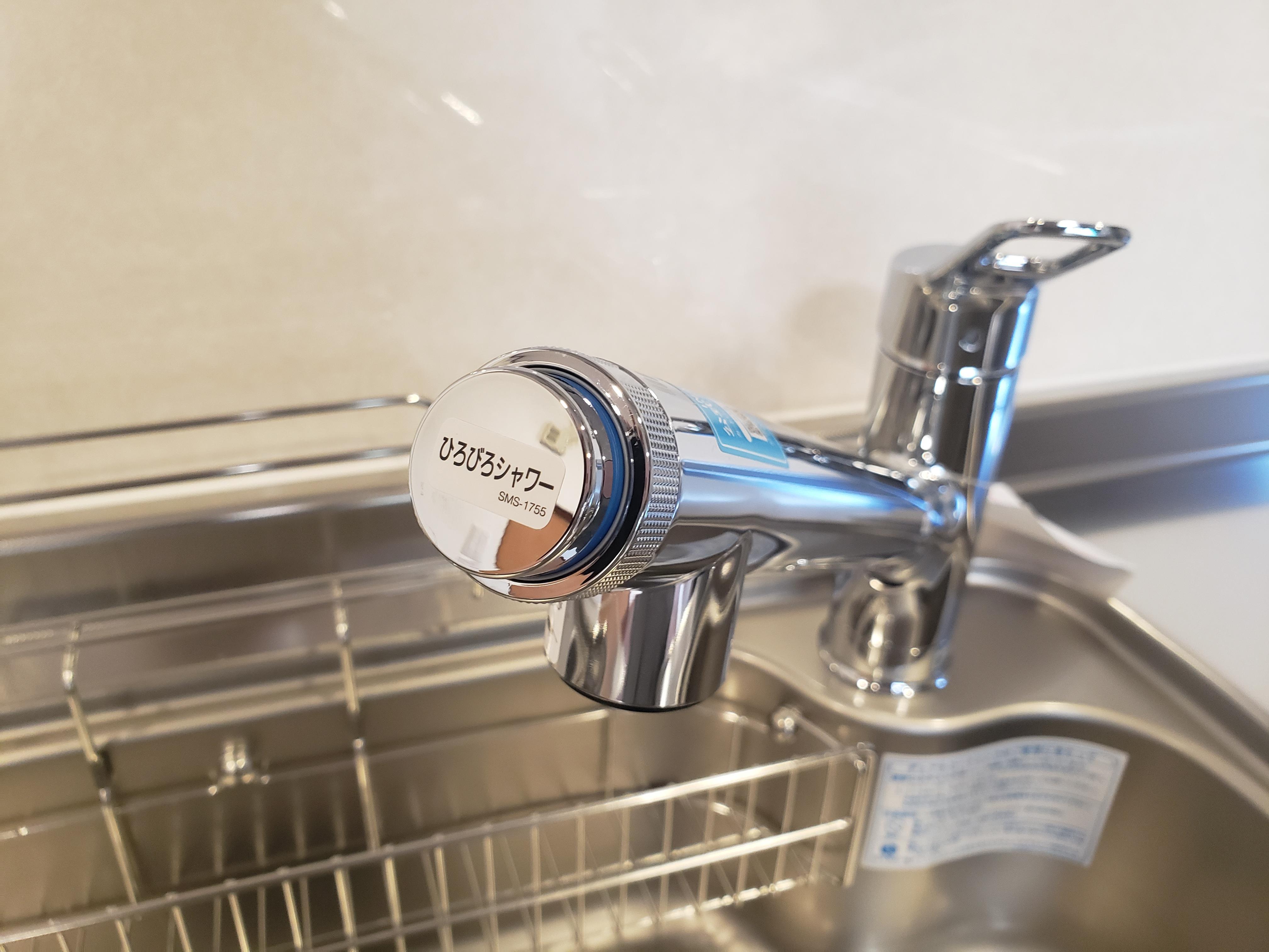 スタイリッシュで使いやすいオールインワン浄水栓を採用しました。プッシュとダイヤルの簡単操作で整流とシャワー、原水と浄水の切り替えが可能です