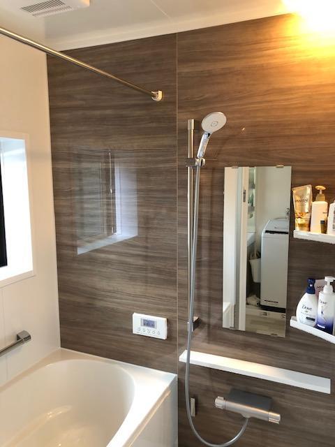 浴室、脱衣室の壁・床・天井をリフォームしました。浴室はユニットバスLIXILアライズを設置いたしました。シックな色合いの木目調の壁が落ち着きのあるオシャレなバスルームに生まれ変わりました。 浴室・洗面のサッシも入れ替えました。併せて、防蟻の工事もしました。