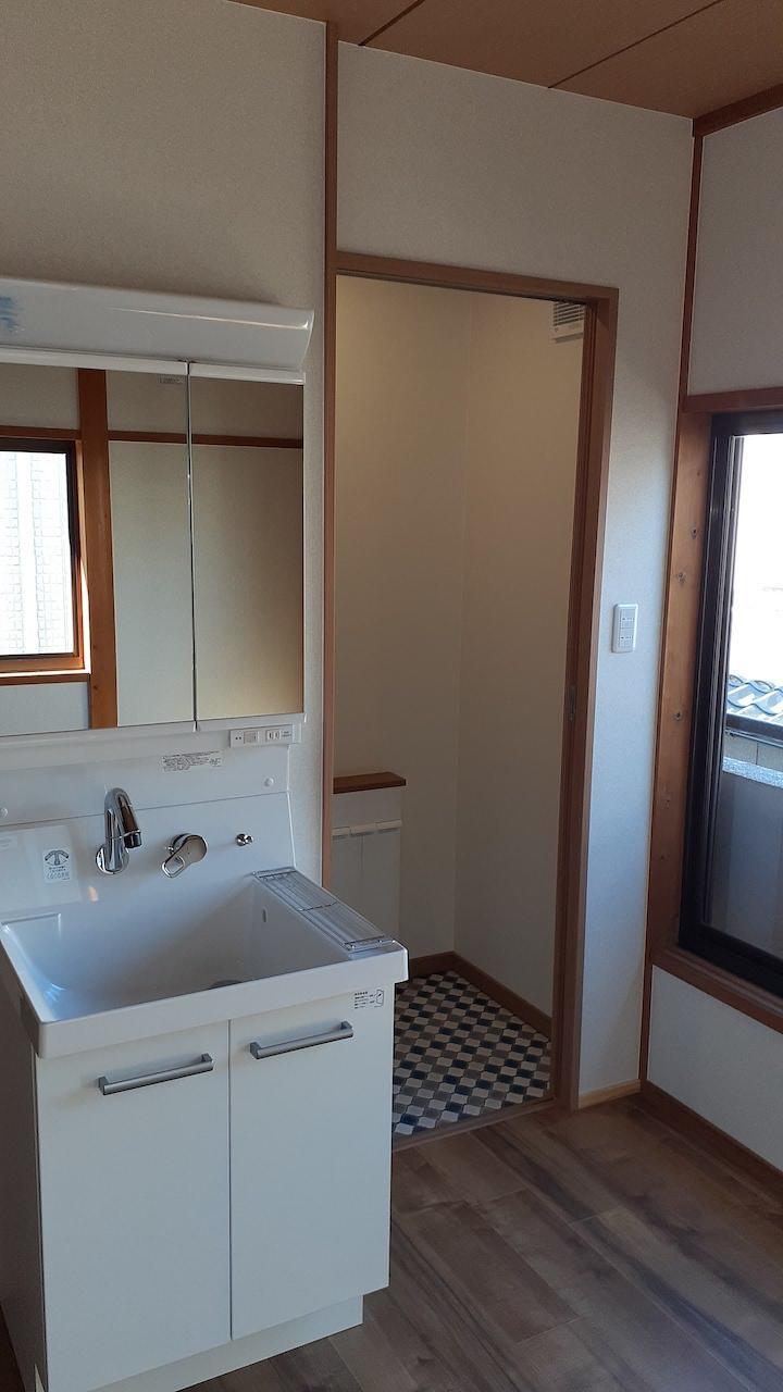 甲賀市のリフォーム補助金をつかってリフォームをおこないました。2階の6畳和室にトイレと洗面台を新設することで、わざわざ下へおりずにすむようになりました。和室のじゅらく壁をクロス貼りに畳はCFシート貼りにしおしゃれな洋室が出来上がりました。お庭だったところにはカーポートを新設しました。