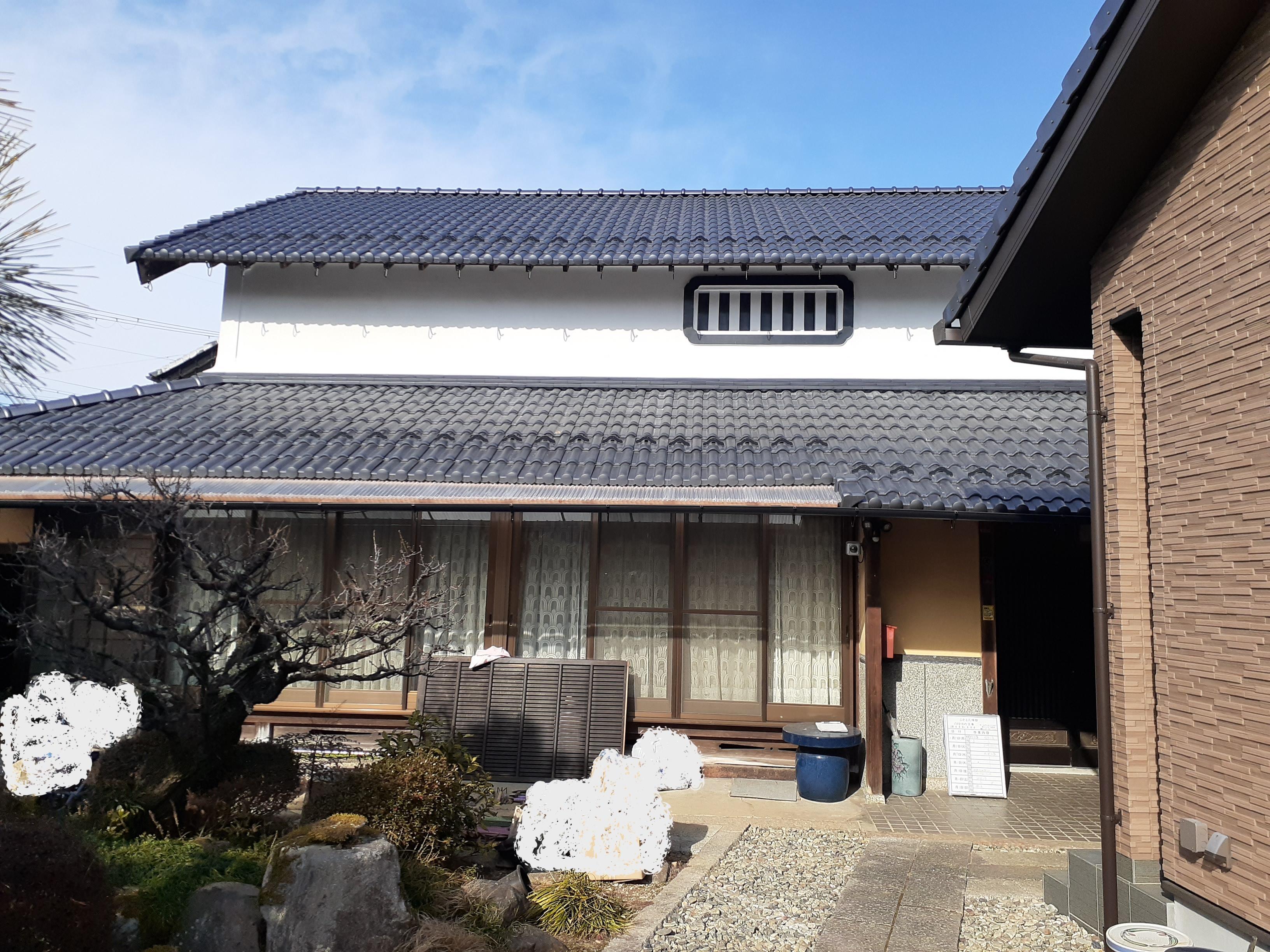 母屋、蔵の屋根を葺き替えし、樋も付け替えしました。遠目にはまだまだきれいそうにみえていても、屋根が一部ずりさがっていたり、雨漏りがひどくなっていました。 台風や大雪などが多いので、屋根が一新することで安心して暮らせるようになりました。