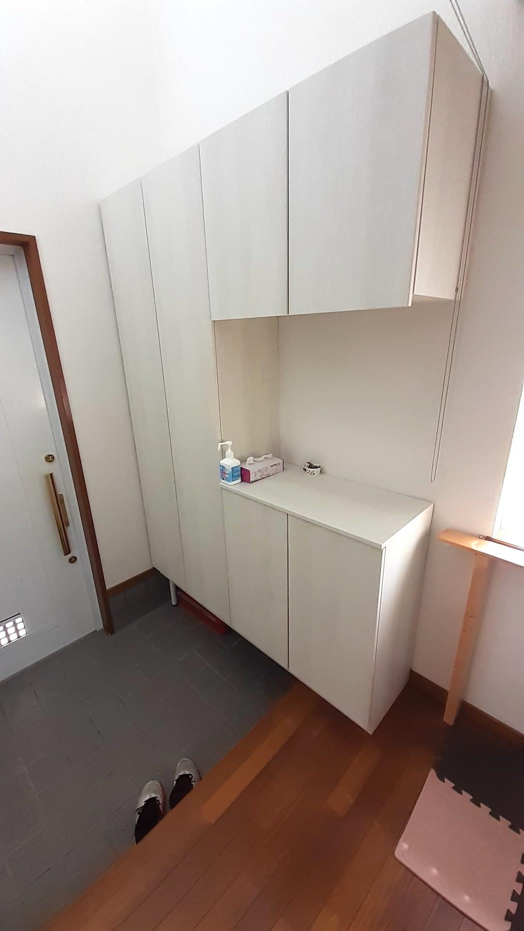 壊れた玄関収納を大容量でおしゃれな収納に取り替えました。 白い玄関ドアともマッチしていて、明るくおしゃれな玄関に生まれ変わりました。 古いタイプのユニットバスも新しいユニットバスにやり変えました。 脱衣所もクロスとクッションフロアも張替えました。 外壁の一部もやり変えました。