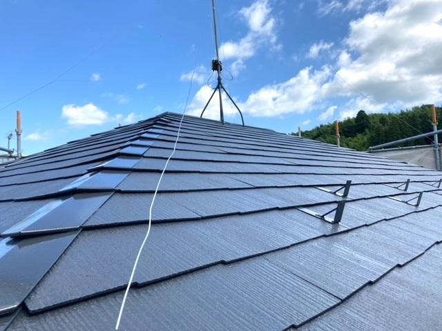 雨風にさらされて汚れてしまった屋根・外壁を塗装工事しました。外壁は、高耐久・低汚染・防カビ・防藻・透湿・微弾性・仕上がりに優れた外壁用塗料シリコンセラで仕上げました。屋根は、UV性機能を強化し、耐候性をさらに向上したスレート屋根用塗料シリコンベストで仕上げました。