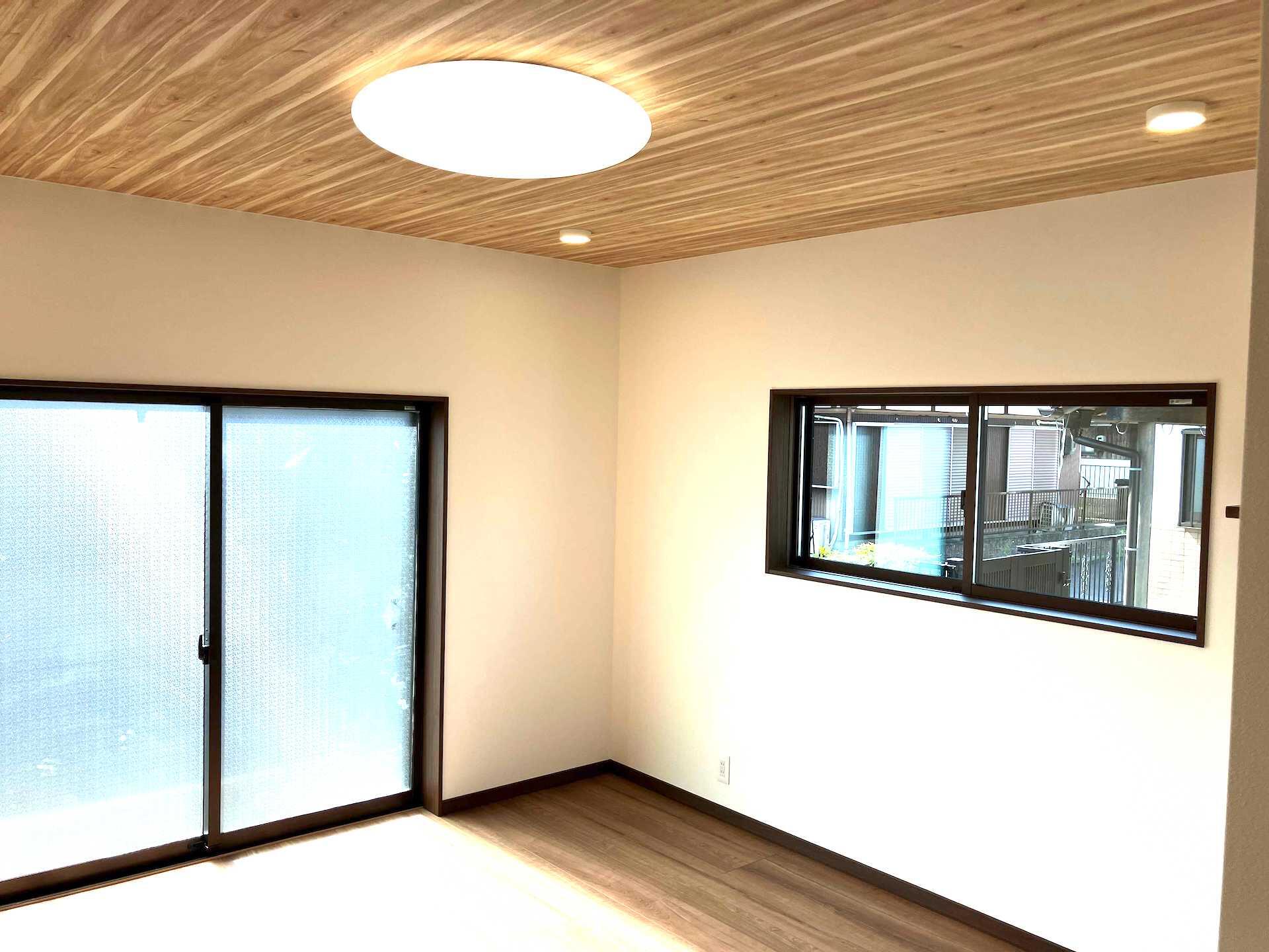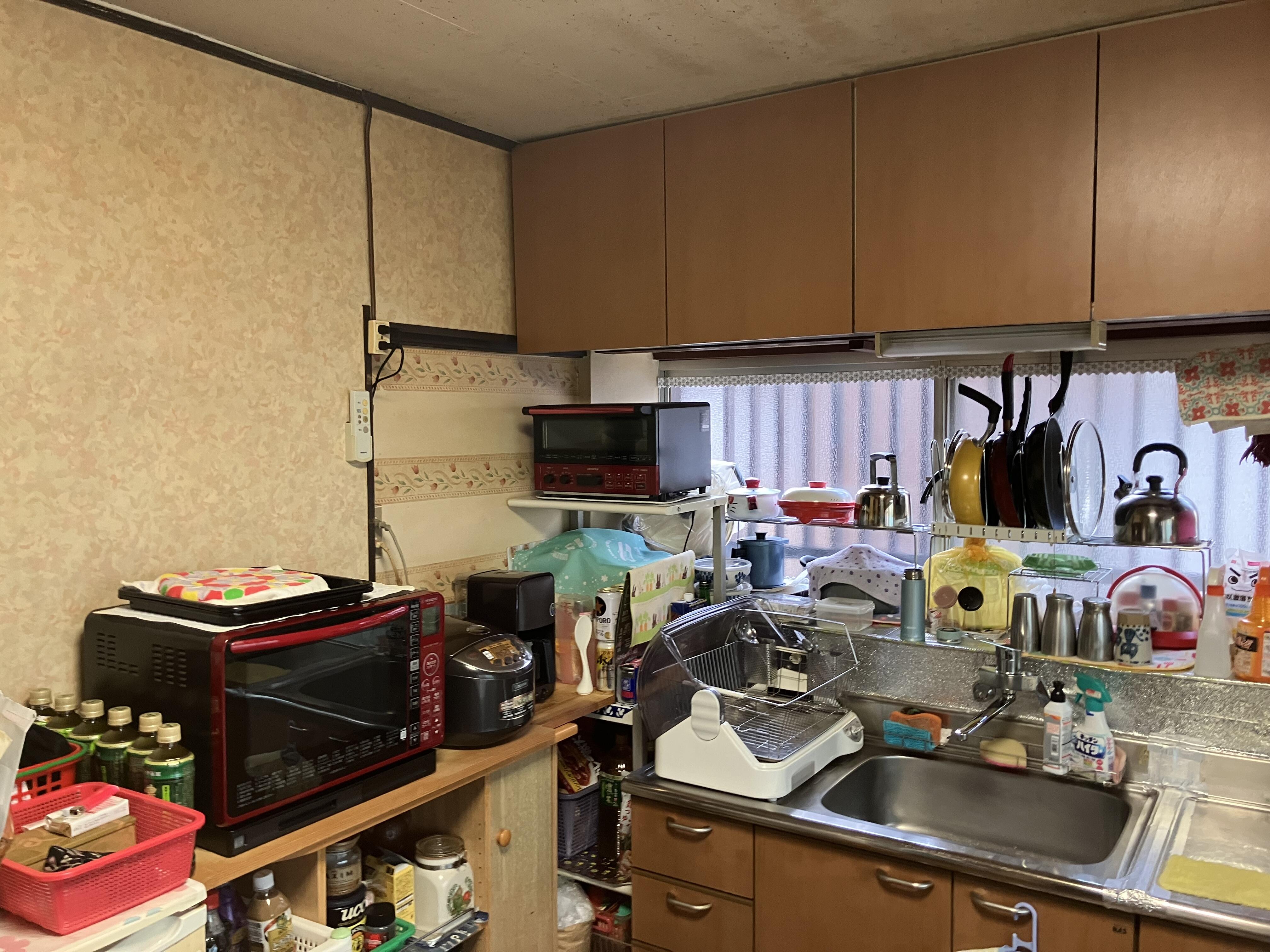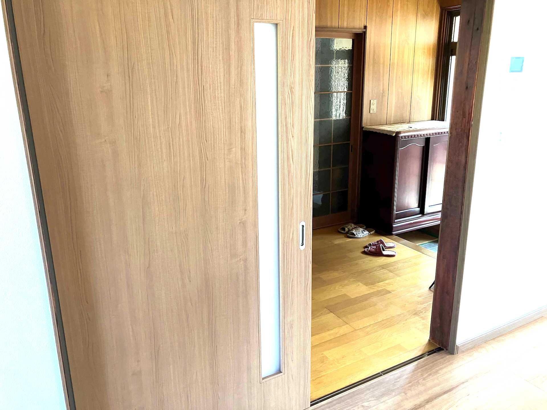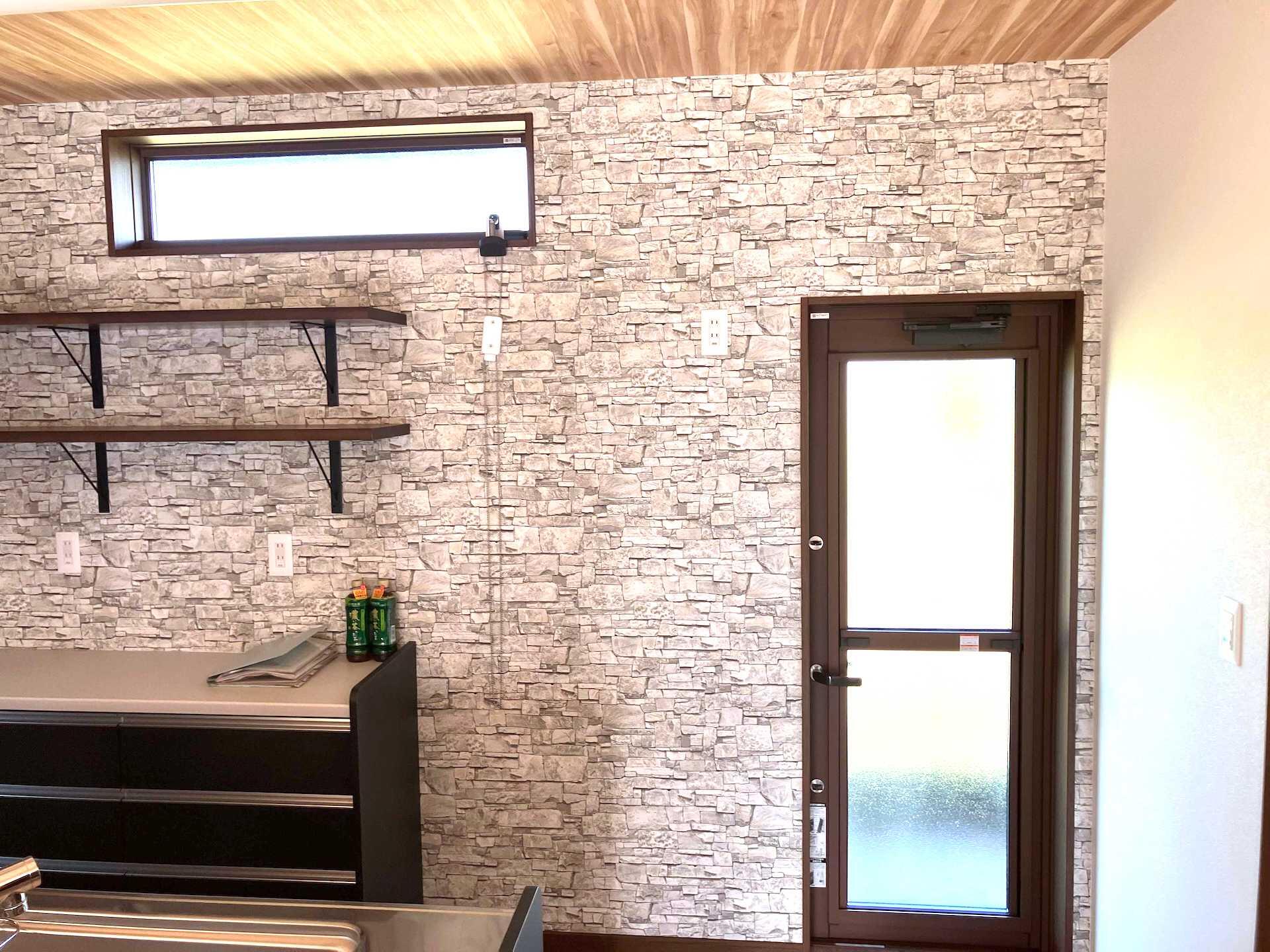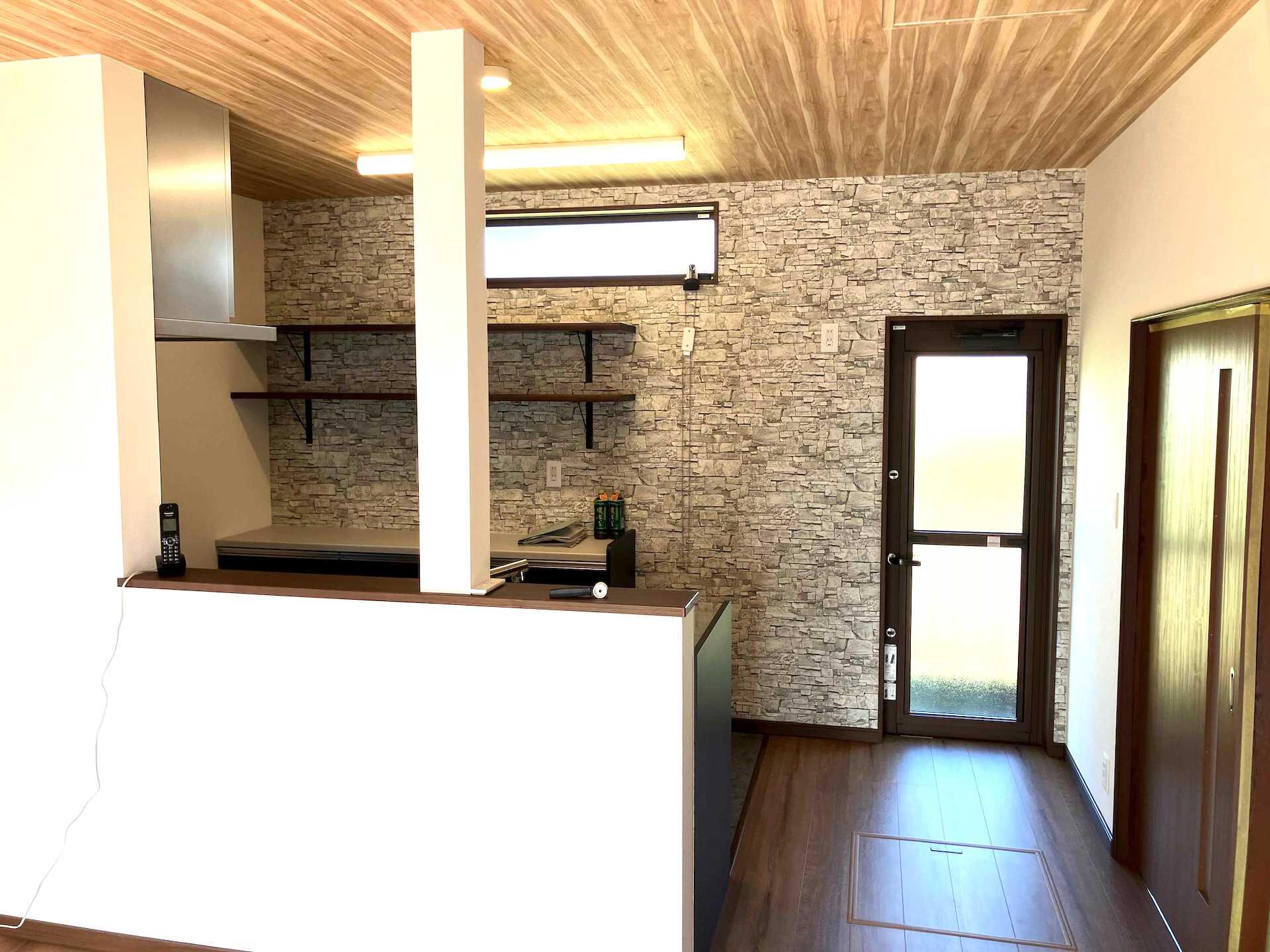 LDKを全面リフォームすることで、新築のようなLDKに生まれ変わりました。壁沿いに設置されていた既存のキッチンを撤去し、カウンターキッチンに改修しました。キッチンとダイニングリビングとの区別がつきメリハリのある空間になりました。また、黒を基調としたシステムキッチンや背面壁のアクセントクロスが高級感のあるお部屋に◎