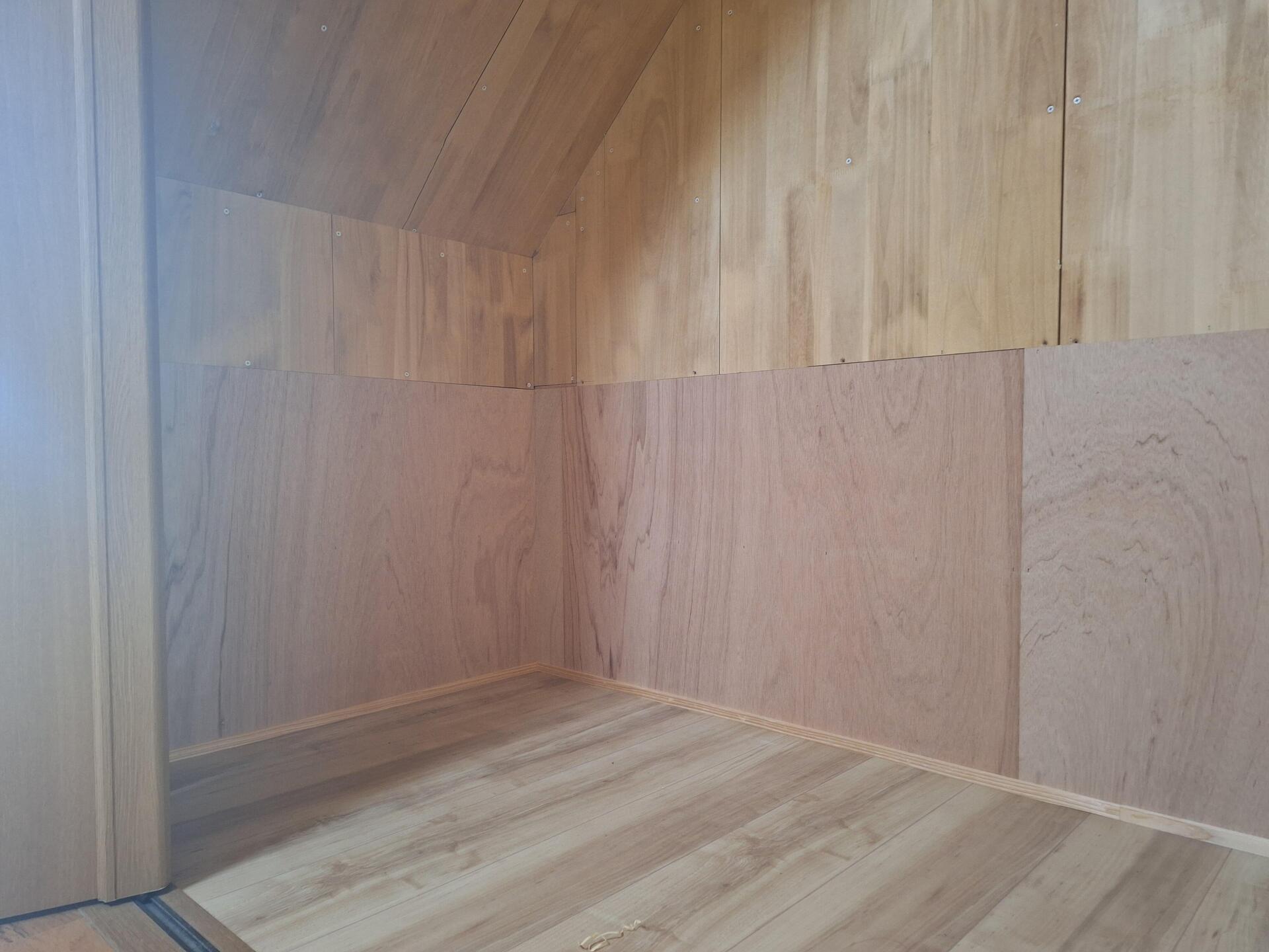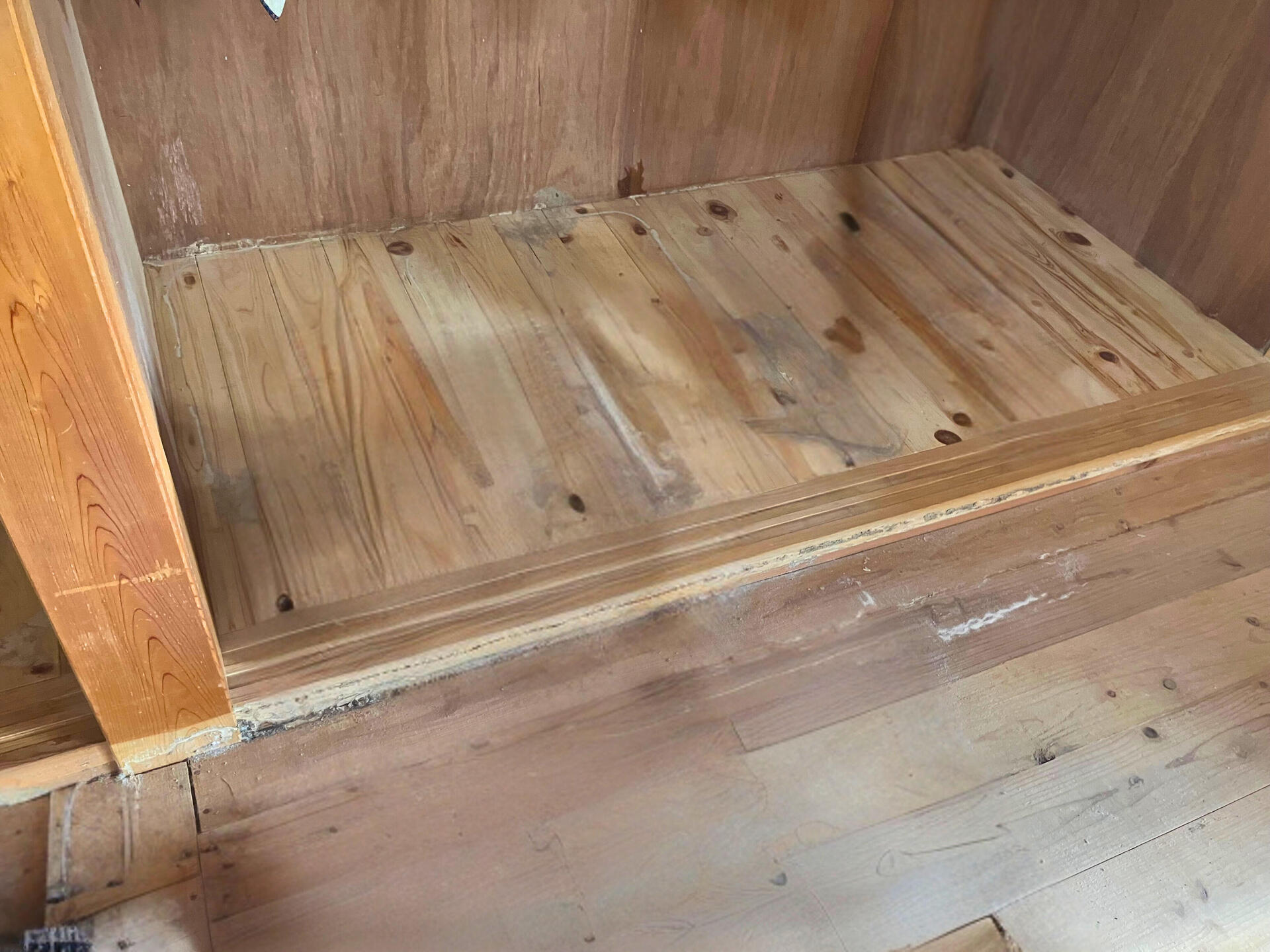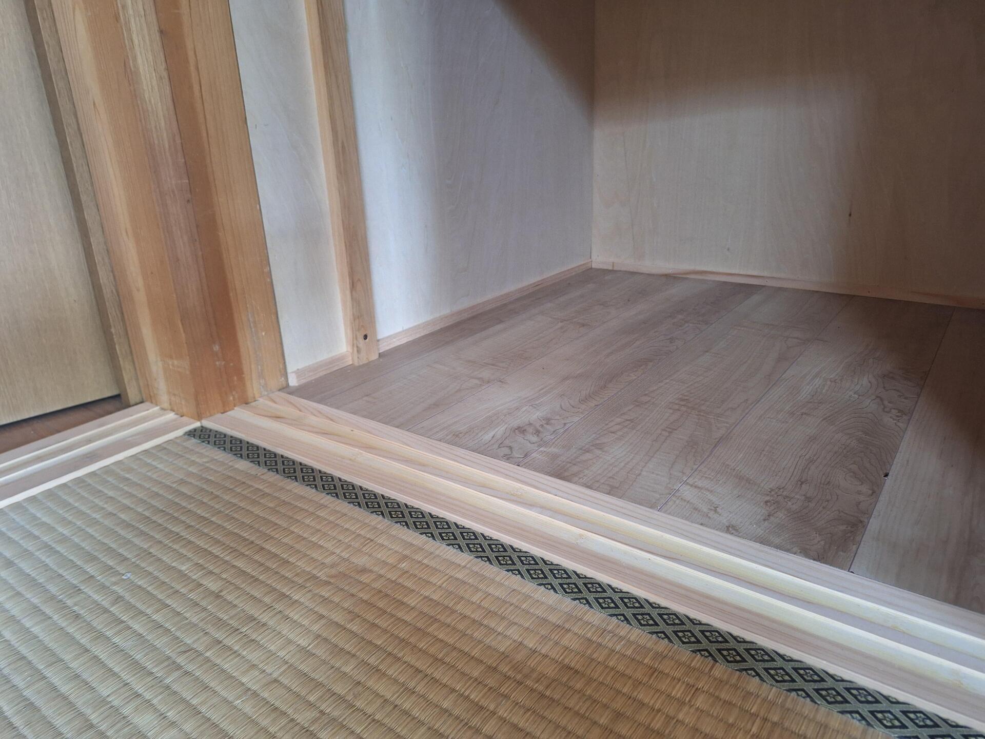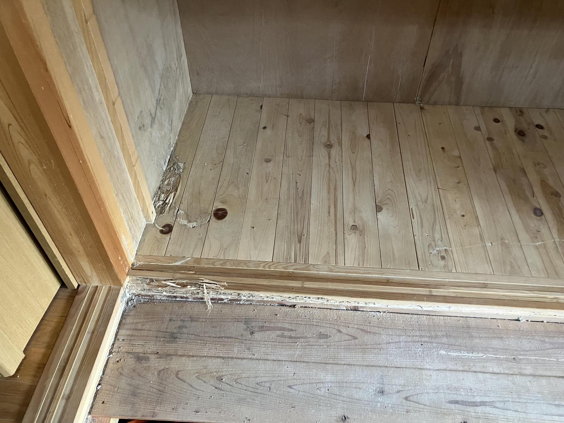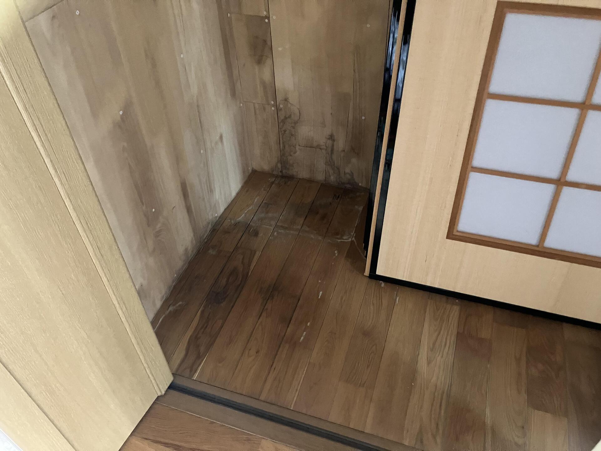 クローゼットおよび押入れの壁・床の張り替えと、敷居の取り替え工事を実施しました。