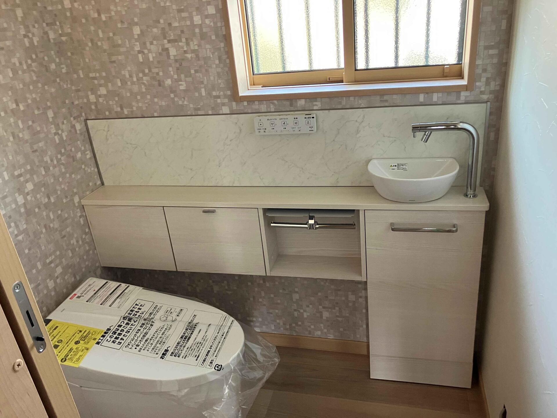 トイレに、手洗器とカウンターを新設しました。清潔感のある、お気に入りの空間に。日常の何気ない動作がスムーズになり、住まい全体の暮らしの質がワンランク向上します!