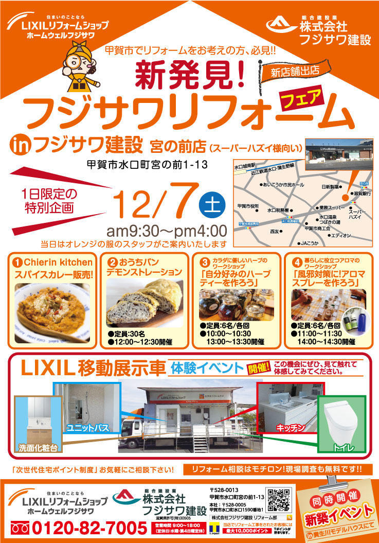 12月7日に新店舗である宮の前店で、フジサワリフォームフェアを開催致します。
