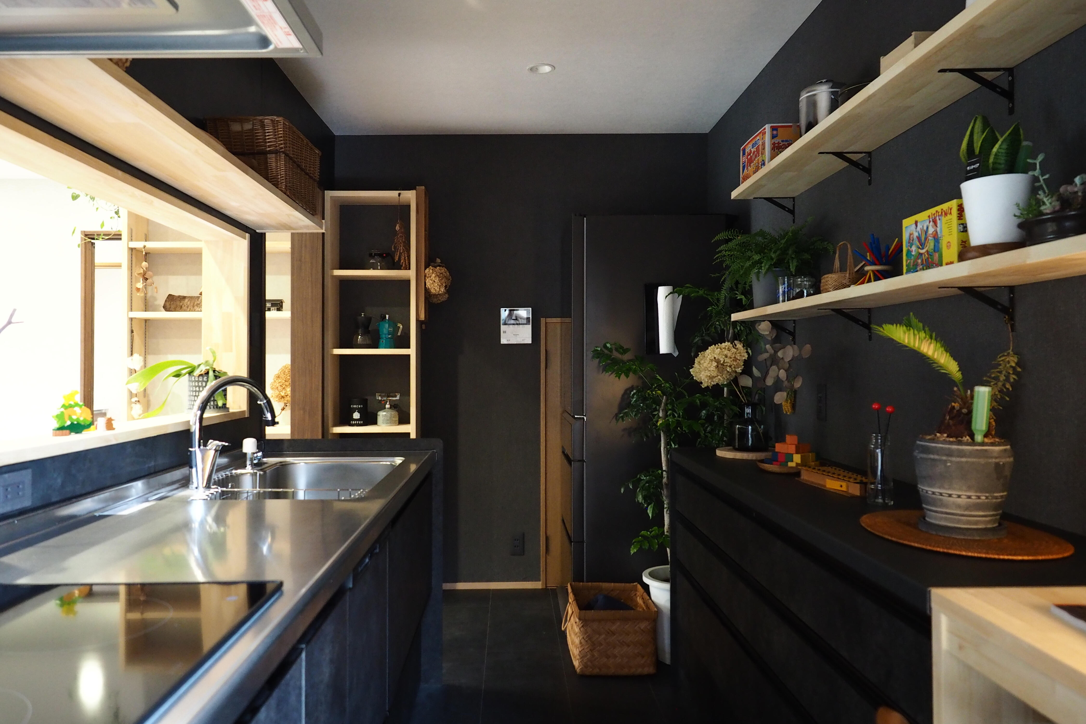 これまでの空間をリセット、バージョンアップし、新しい生活へと切り替わるリフォーム/リノベーションというタイミング。趣味や趣向はそのままでも、おさまる空間や、色合いの統一がなされた空間では、まったく新たな価値観となるかもしれません。もともと植物も多く飾ってあったリビングルーム。私も好きなコウモリランや、私も知らなかった植物があったり、この植物たちが美しく存在する空間を作りたい!と思い、精一杯提案と工事をさせていただきました。