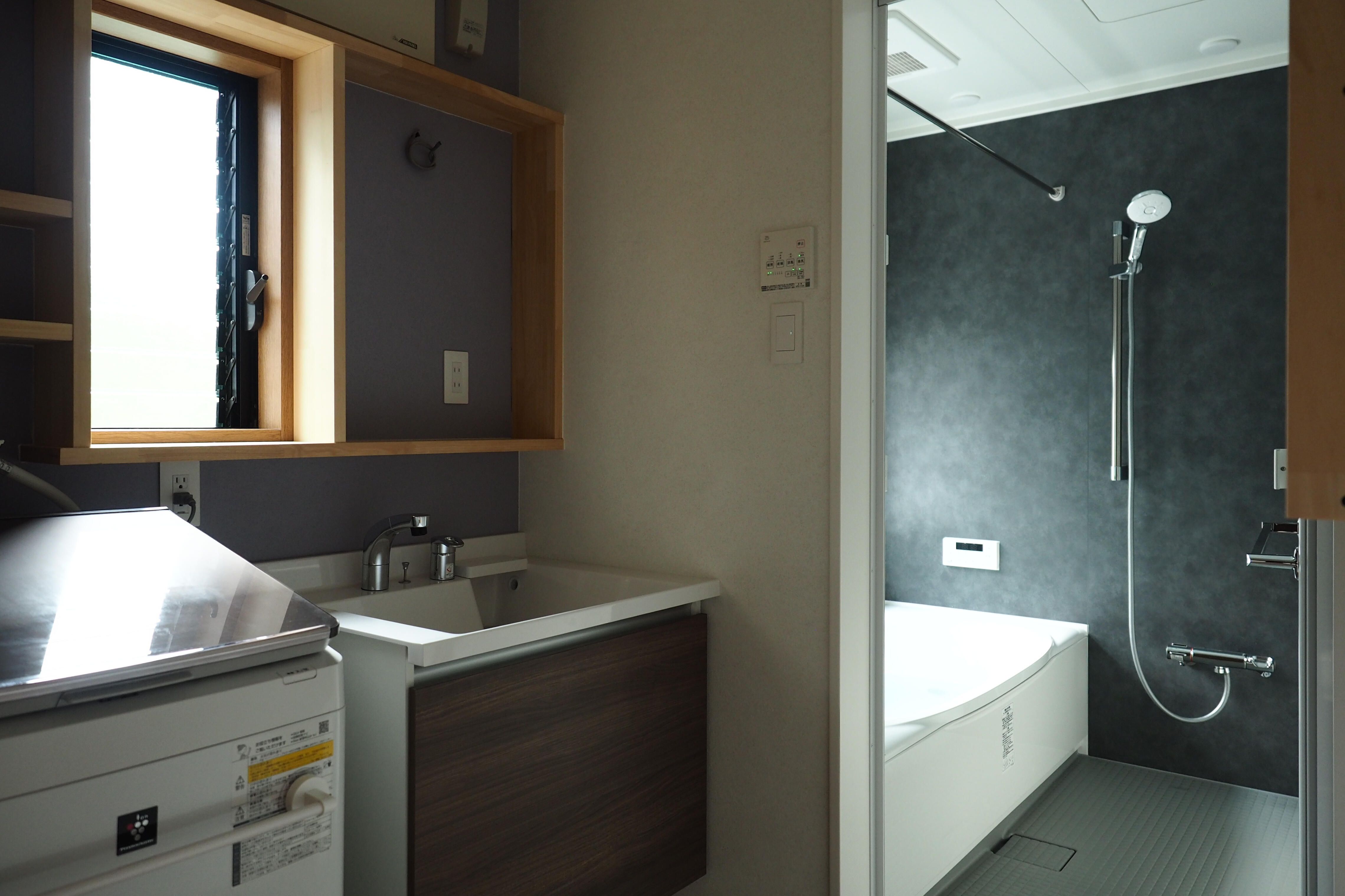 以前に床を無垢フロアにし窓断熱や浴室工事でお世話になったお客様より、大変お世話になった方とのことで、リフォームの相談に乗っていただきたいとご連絡をいただきました。内窓断熱インプラスの工事を早々にさせていただき、気にはなっていたキッチンや浴室のリフォームについてもご相談をさせていただき、様々な施工例やプランを提案させていただきながら工事に入らせていただきました。 浴室においては、現状1200mm×1600mmの浴槽の短いタイプで洗面室のほうが広く、洗面所を小さくしてでも浴室を広げられないか?とのご相談の元、工事プランを作成いたしました。特に取ってはいけない柱などはなく、洗面と浴室の間にある基礎を撤去するだけで空間の変更が可能でした。しかし問題になったのが小さくなった洗面所に既存の洗面台を収めると、3面鏡が窓にぶつかってしまうこと・・・。そこで、洗面台の下部分だけをLIXILのルミシスを新調し、上部の棚や鏡は造作することで空間の統一感を図るご提案をいたしました。