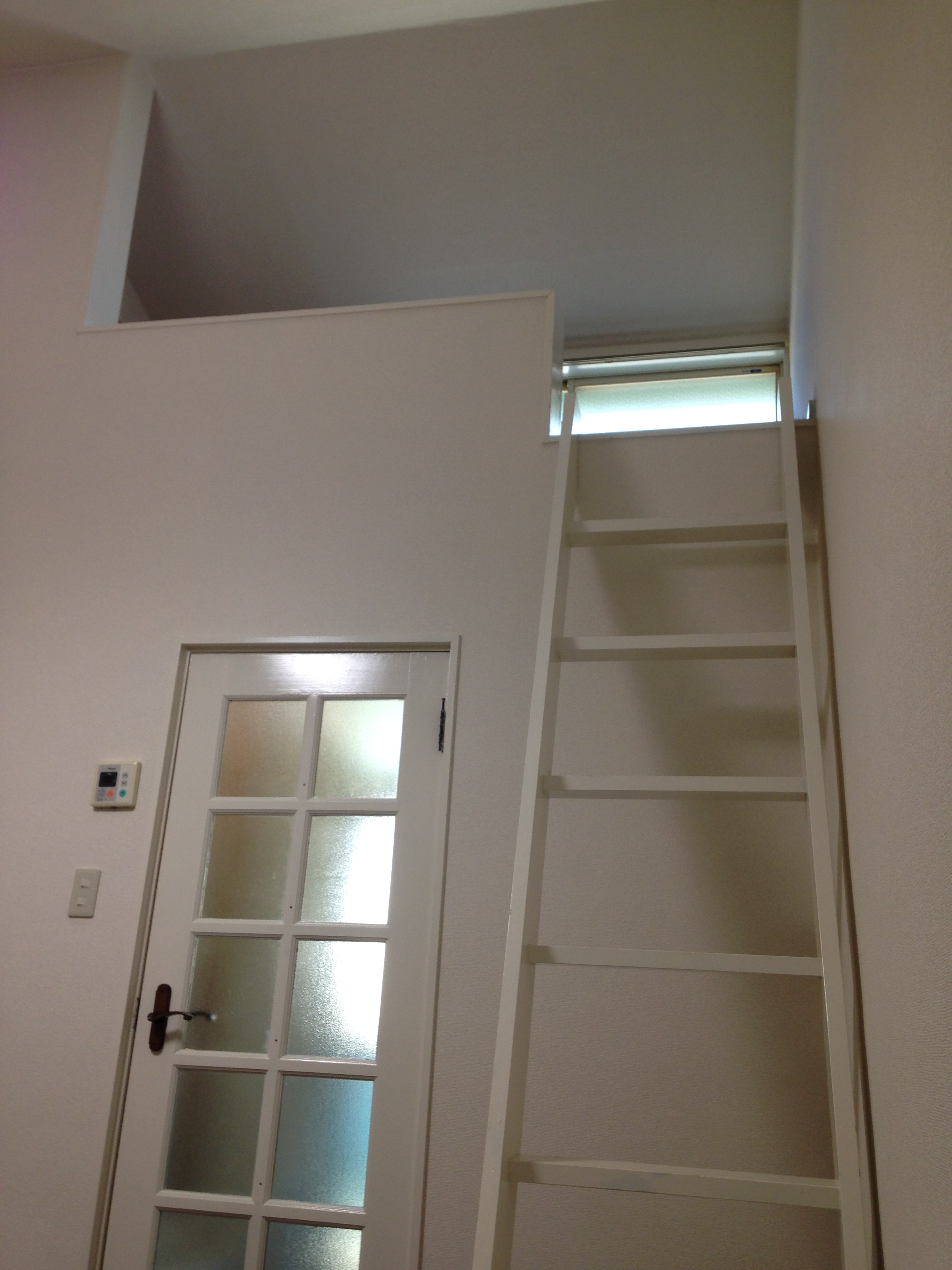 ロフト付きの賃貸物件。 傾斜天井のため天井高が高いところでは5Mもあり、今まで電球の交換が大変でした・・・(-_-;) そこで、長寿命なLEDライトを使い電球交換の手間をカット!(白熱電球の寿命は1,000~2,000時間、蛍光灯の寿命は6,000~12,000時間程度。これに対してLEDの寿命は4~6万時間と、はるかに長いのが特徴です。) 形も傾斜天井空間を効率よく照らすものをセレクトしました。しかも、明るさや色を自由に調節でちゃう優れものです(^^)