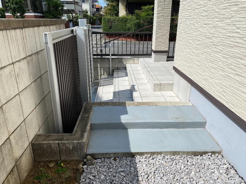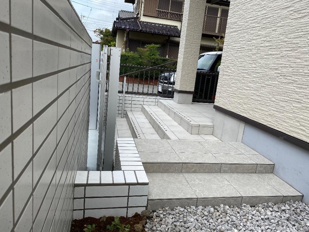 7年前にお引渡ししたお客さまのお住まい。 当時の外構プランは白い化粧ブロックでしたが、7年でだいぶ汚れてきていました。 お客さまの生活スタイルの変化から、よりメンテナンス性に優れたタイル仕様でご提案しました。 これで、日常のお手入れはだいぶラクになるはずです。