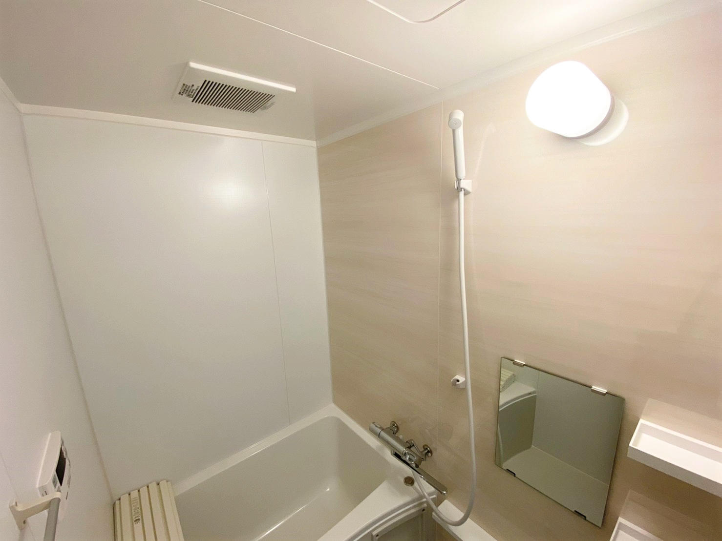 ユニットバスからユニットバスへの交換ですが、既設の浴室はタイルの壁だった為、室内の印象は大きく変わりました。