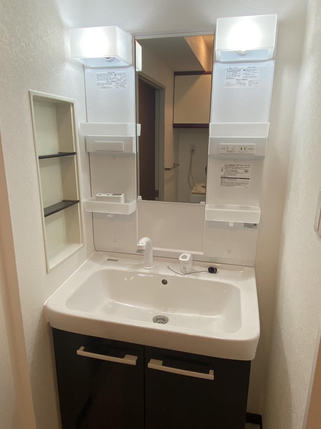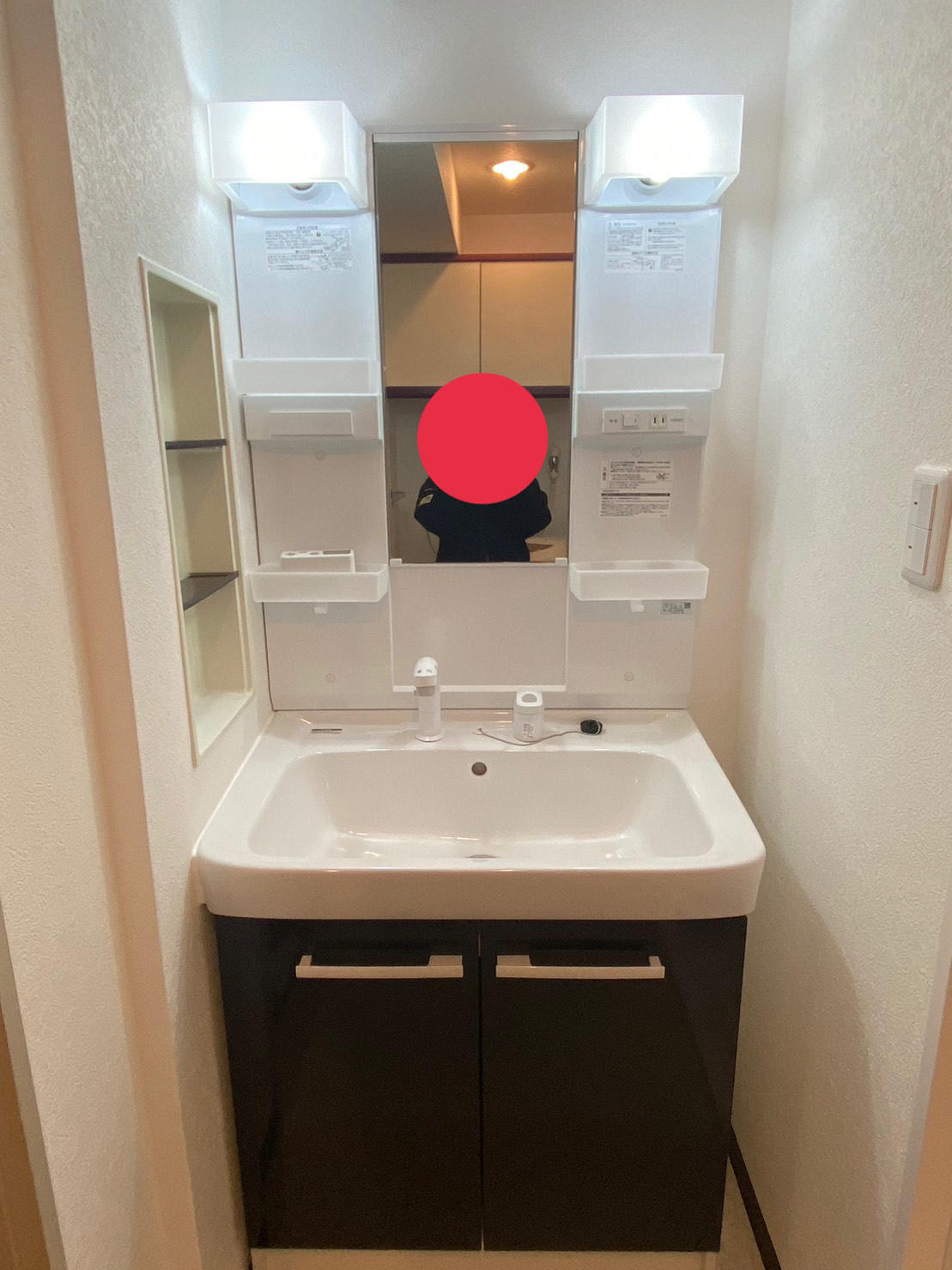 間口は既存の洗面化粧台が80㎝でしたが規格サイズに80㎝はなかったので75㎝にサイズダウンいたしました。
