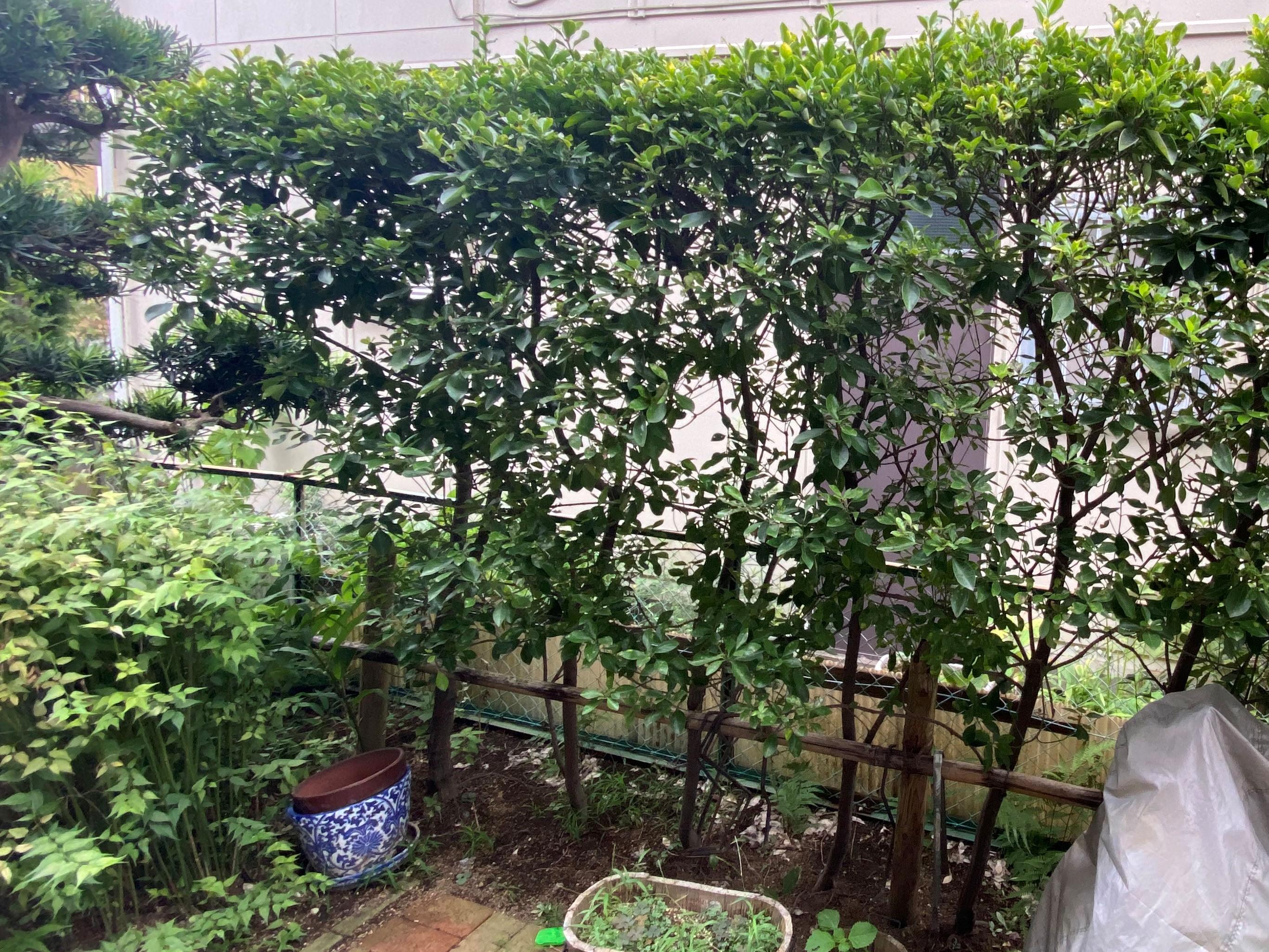 目隠しのために、植わっていたカナメモチの木を撤去し、こちらのフェンスを2スパン分施工させて頂きました。