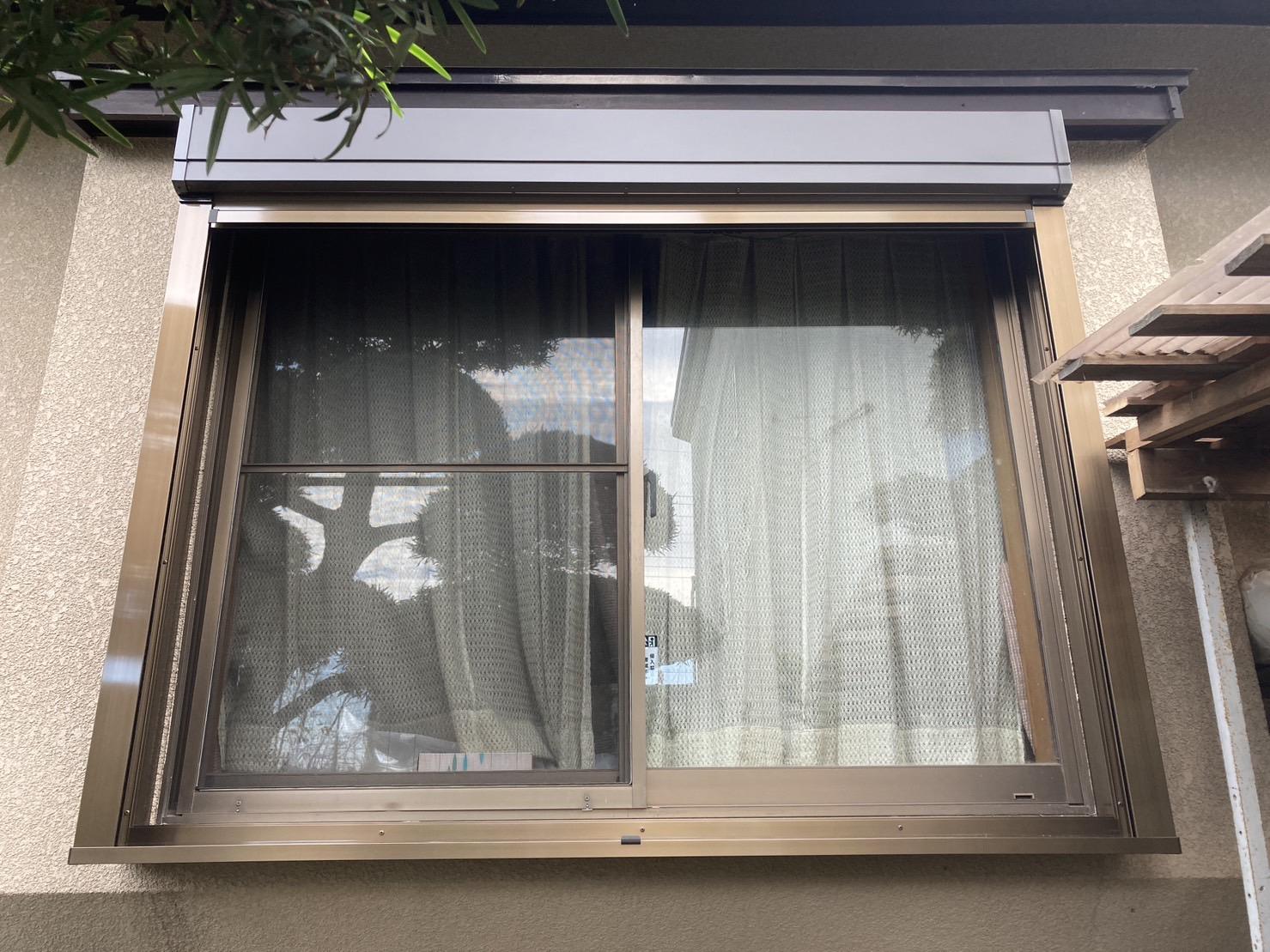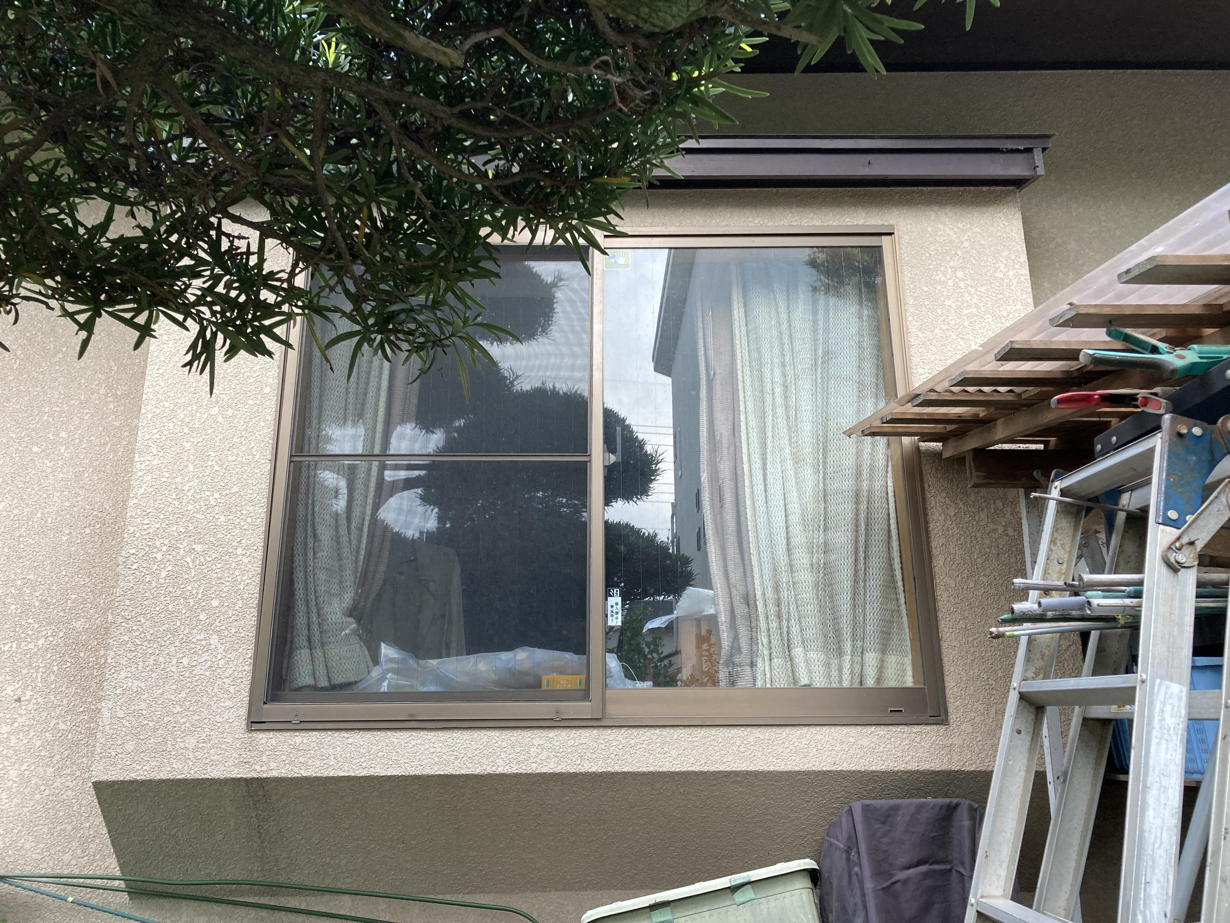 窓の上端と出窓の屋根部分の幅が狭いため、【ボックス下げ納まり】という設置方法で施工させていただきました。