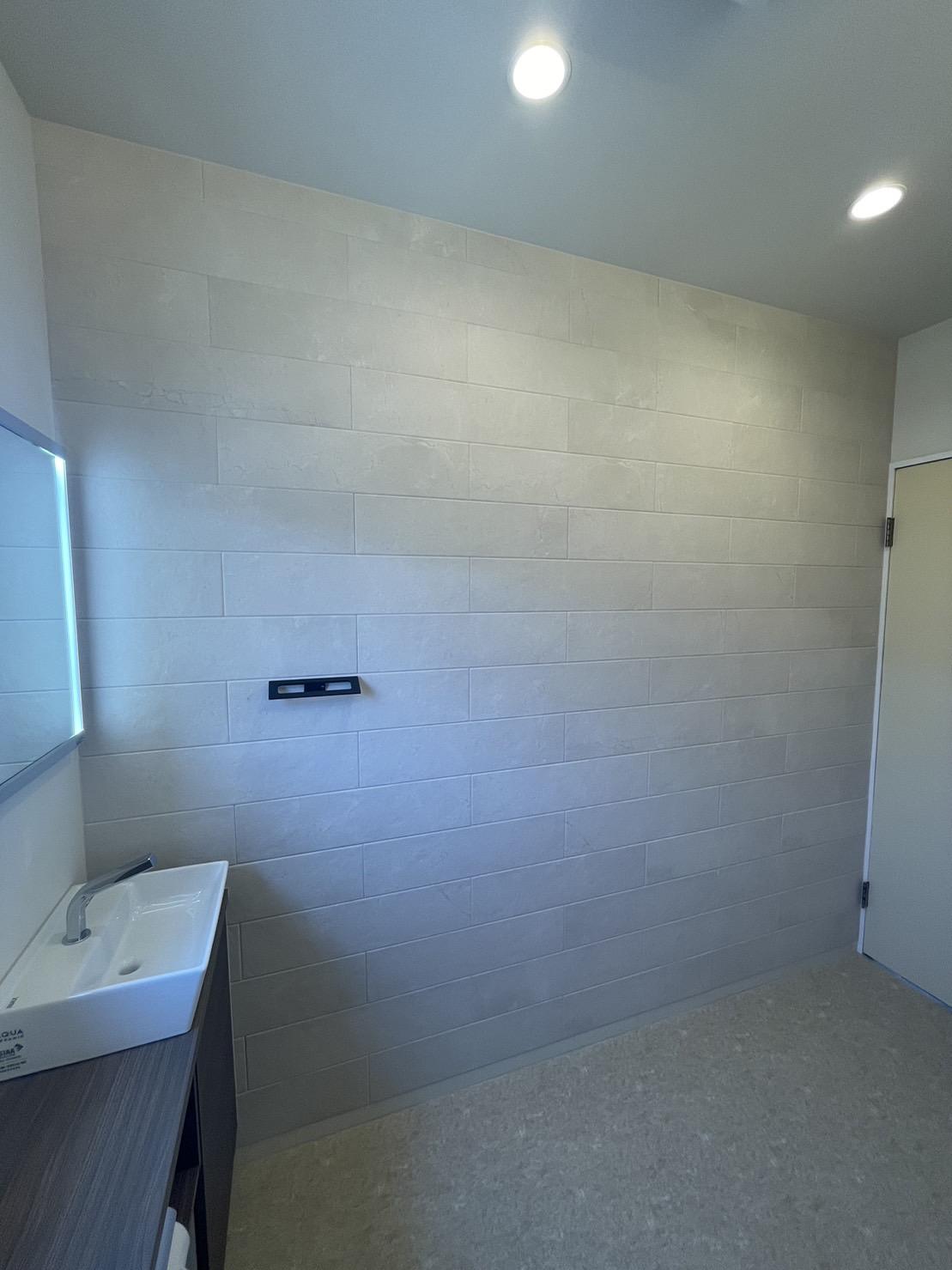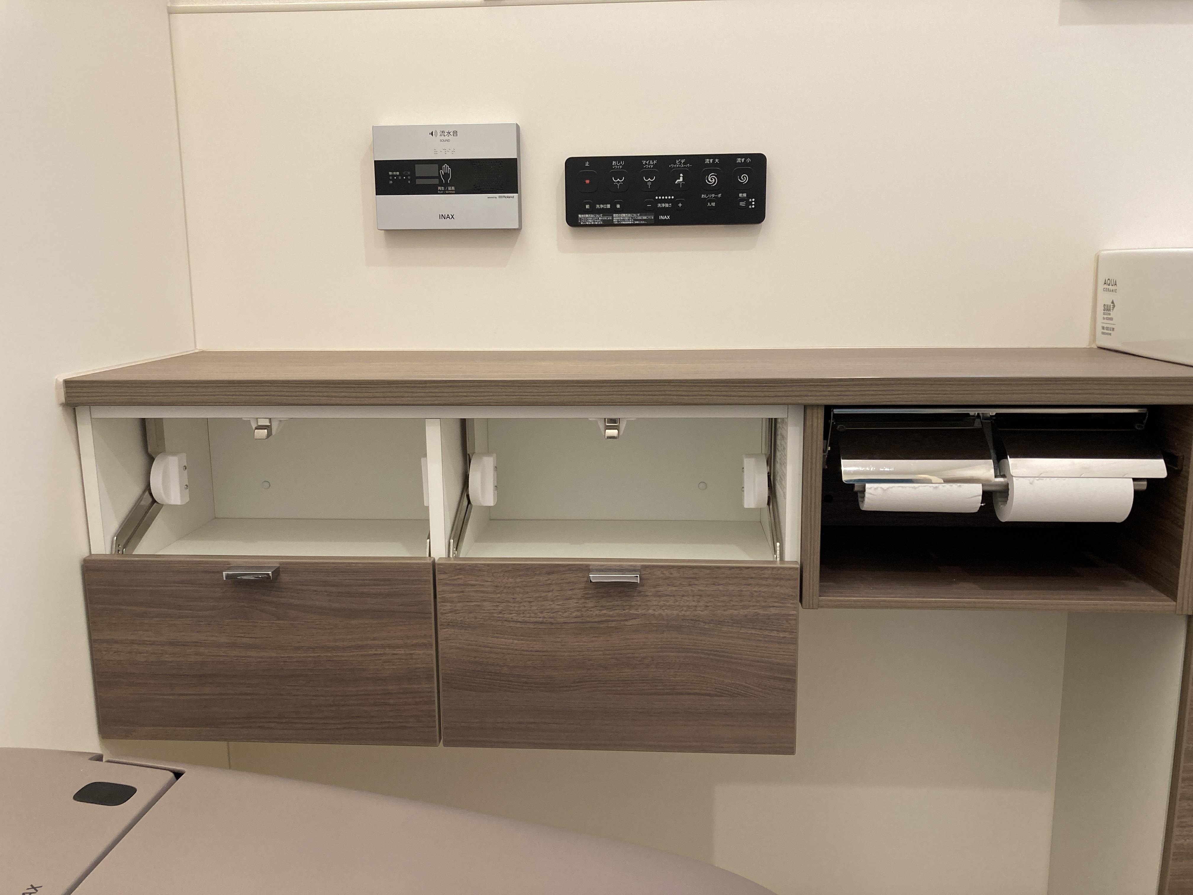 そしてなんといってもカラーバリエーション!サティスGは、現在5色の色展開がございます。ノーブルトープという落ち着いたブラウンを選定させていただきました。手洗いカウンターと馴染んで、とても統一感のある落ち着いた空間を演出してくれます。