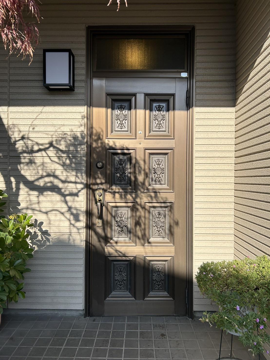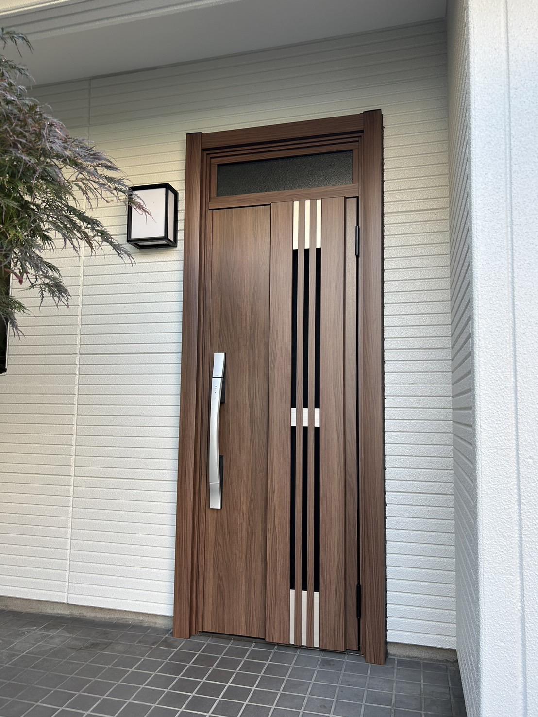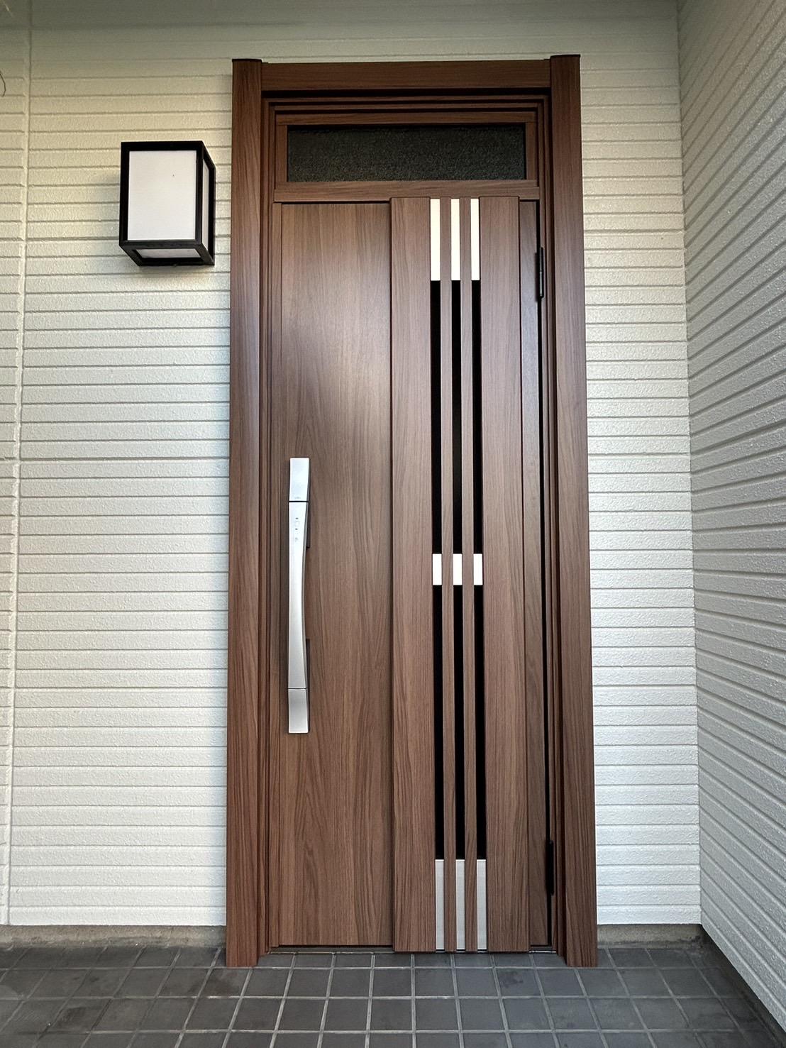年数も経っていたことから外壁塗装と一緒に玄関ドア交換のご依頼をいただきました。 ご採用いただいたのは採風できるデザインのM83型です 採風部分には網戸が付いているので虫の侵入も心配いりません! 鍵はFamiLockのカードキーセットを追加し玄関の施開錠もカードをかざすだけでラクラクです♪