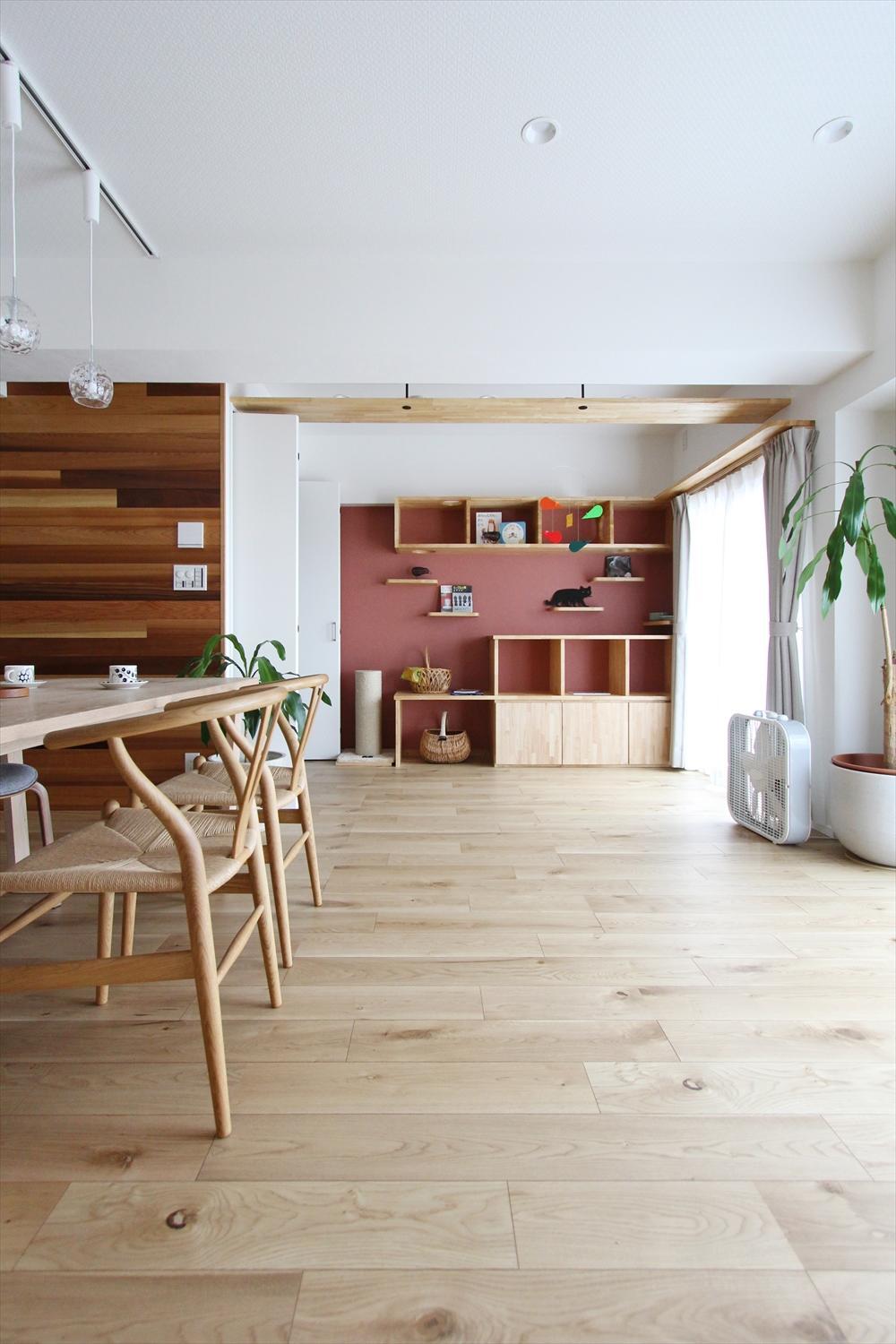 弊社との出会いは、義理の息子さんが弊社のホームページを見てくれて、 問い合わせを頂きました。 物が多かったので、この機会に断捨離をする。ということで 収納量を極力取らないようにしました。 洋服専用のクローゼットを用意。 弊社の施工事例を何件か見て回っていただき、レッドシダーを すごく気に入ってくれていました。 いたるところにレッドシダーをつかい、コーディネートしました。 ネコと暮らすということは前提であったので、猫と楽しく暮らせるよう キャットウォークを提案。 独立した子供も月に何度かかえってきては、孫を連れてくるそうです。 孫がネコと一緒に遊んで楽しい時間を過ごされているようです。 ありがとございました。