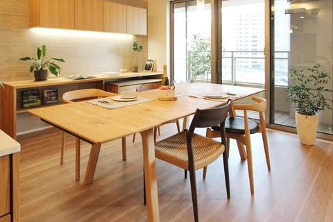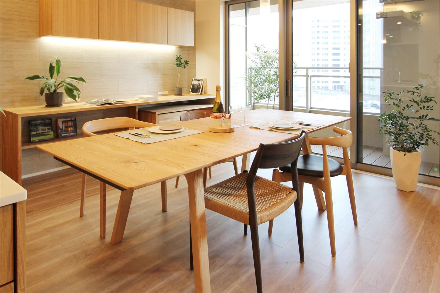 ダイニングテーブルはカンディハウスの「テン」をセレクト。脚部を持ち上げることなく最大700mm伸長できるエクステンション機構を備えているため、ゲストが来ても安心です。床材や内装のカラーに合わせて家具をチョイスし、一体感が生まれるようなコーディネートを意識しました。