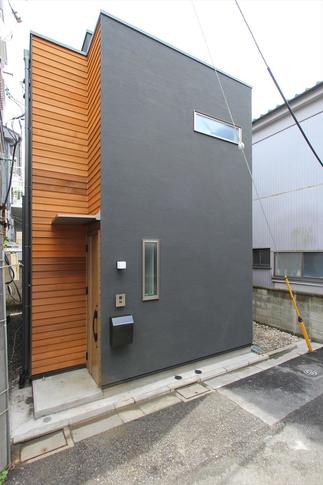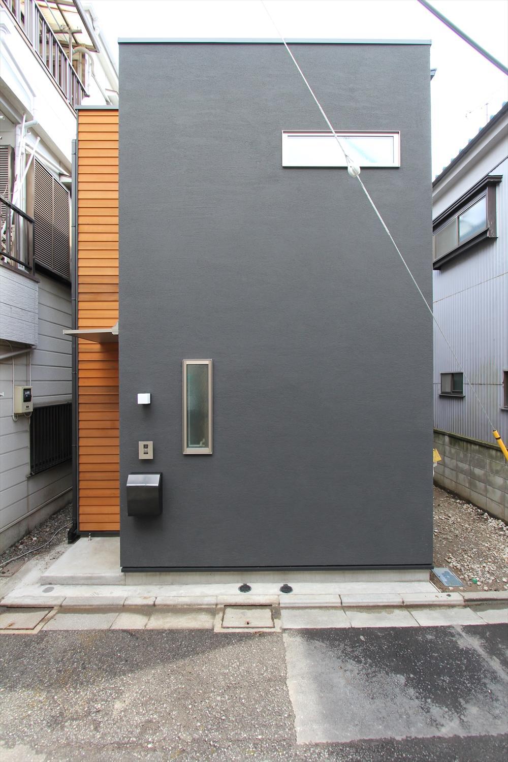 既存住宅から玄関の位置は変えず、形状と仕上げ素材を変えることでモダンなデザインへとアップデート。新築と比べても遜色ない意匠性を実現しました。外壁材は美しい仕上がりが特長の「sto」社の塗り壁材(グレーカラー)に、優れたメンテナンス性を発揮する超撥水トップコート材「ロータソン」を塗布しています。アクセントにチャネルオリジナルの天然木パネルを組み合わせ、重たい印象になり過ぎないように配慮しました。プライバシーを確保するため、窓の形状と位置も変更しています。