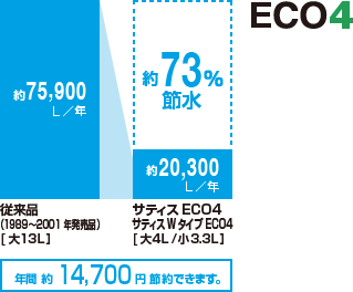 ECO4は、ブースターにより水勢を増したり、便器形状を最適化した結果