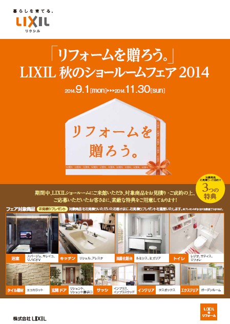 一覧へ戻る9月から、LIXILさんの秋のショールームフェアが