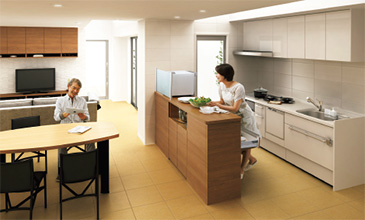 奥行きも広いハイカウンターは、忙しい朝の配膳や軽い食事などにも便利です。