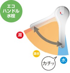 一覧へ戻るLIXIL(INAX)エコハンドル水栓は、レバーハンドルをお湯側にひねる際