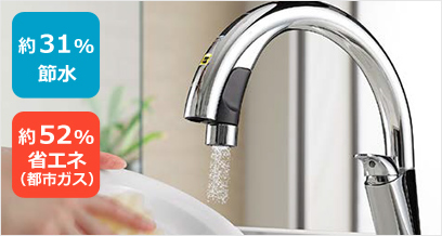 吐水と止水を自動で行いムリなく節水できるセンサー付き「水栓金具」
