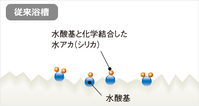 水アカ(シリカ)が水酸基と化学結合して汚れがこびりつきます。
