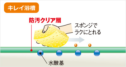 水アカ汚れがつきにくい防汚クリア層をプラスした「キレイ浴槽」なら、
