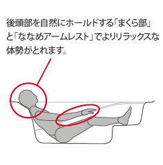 頭を自然に支えるまくら部付き「ラウンドライン浴槽」