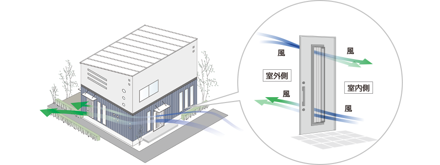 もちろん、ドアを閉めたままで採風できる防犯性にもしっかり配慮しています。