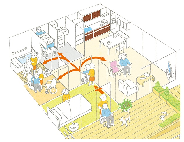 トイレや寝室などまわりの空間と行き来しやすくして、安心・気軽に入れるお風呂にしましょう。