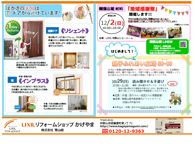 裏面では、毎年恒例イベント『地域感謝祭』のご案内、