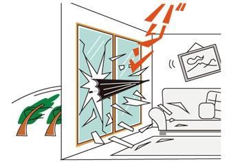 ガラスが割れて室内に破片が飛び散ると、ケガの原因や避難の妨げになり大変危険です。