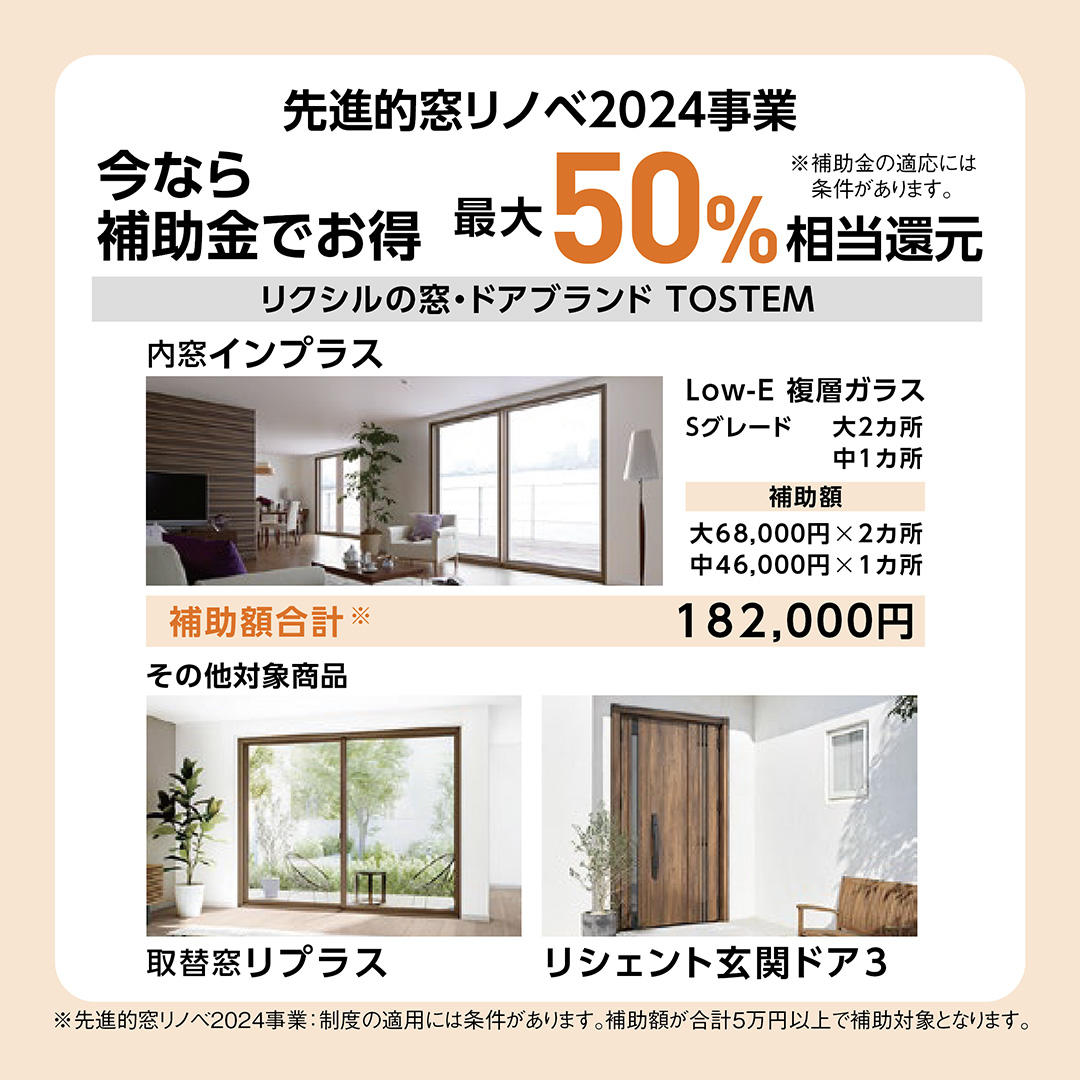 断熱内窓の設置も条件を満たせば、かかった費用の半分相当の
