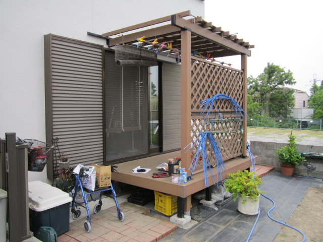 花粉対策のため、デッキからサンルームへ変更。旧デッキを実家へ移設しました