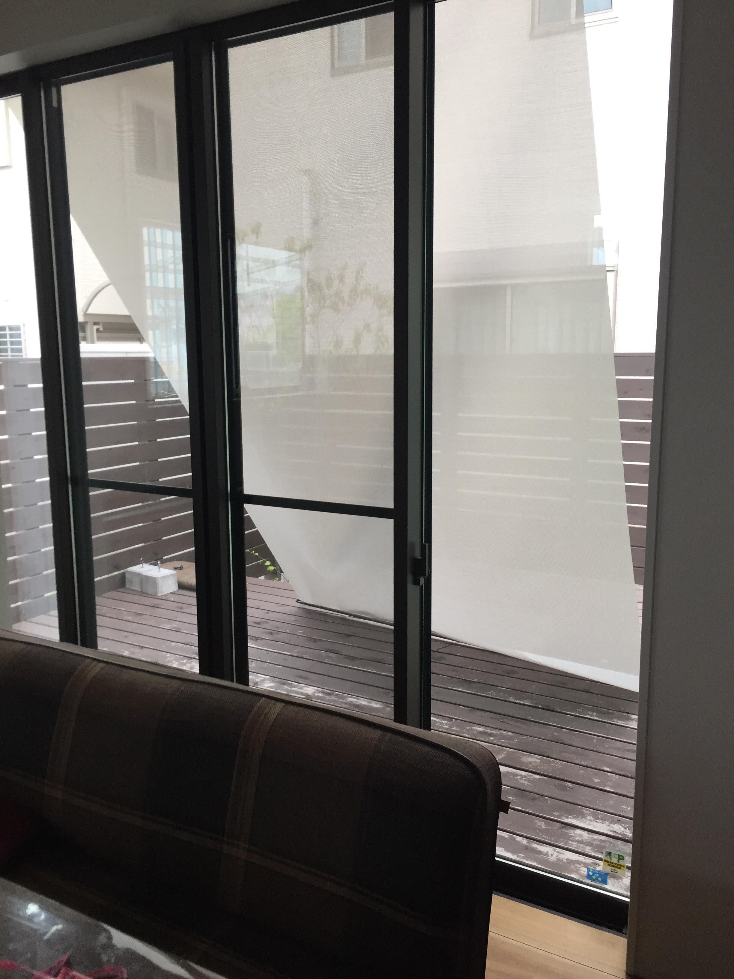 夏におすすめのシェード取付工事。収納もできる新しいシェードで、よりスタイリッシュになりました。室内に光が入りながら遮熱できるシェードで、夏を快適にお過ごしいただけると思います。