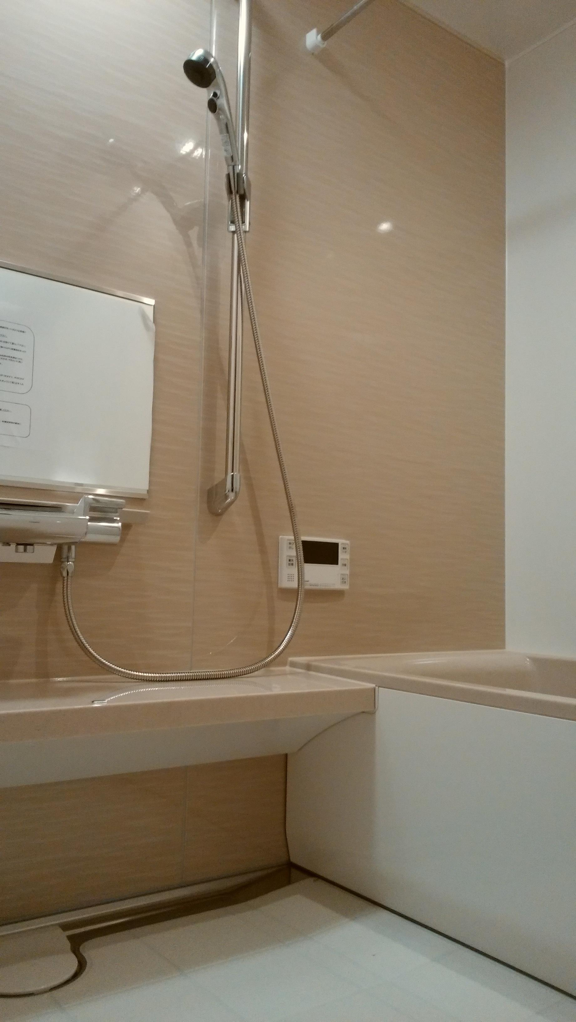 タイル張りのお風呂から、ユニットバスへリフォーム。ダーク色のタイルのお風呂から、ガラッと色合いも変わり明るいお風呂になりました。