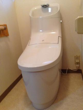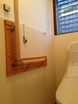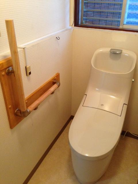 配管や配線の見える従来のトイレから、配管のほとんど見えないスッキリとしたトイレへリフォーム。邪魔な配管や配線がなく、ホコリもたまりにくく、掃除もしやすくなりお手入れも楽になりました。L型の手すりも付けて、使い勝手の良いトイレになりました。