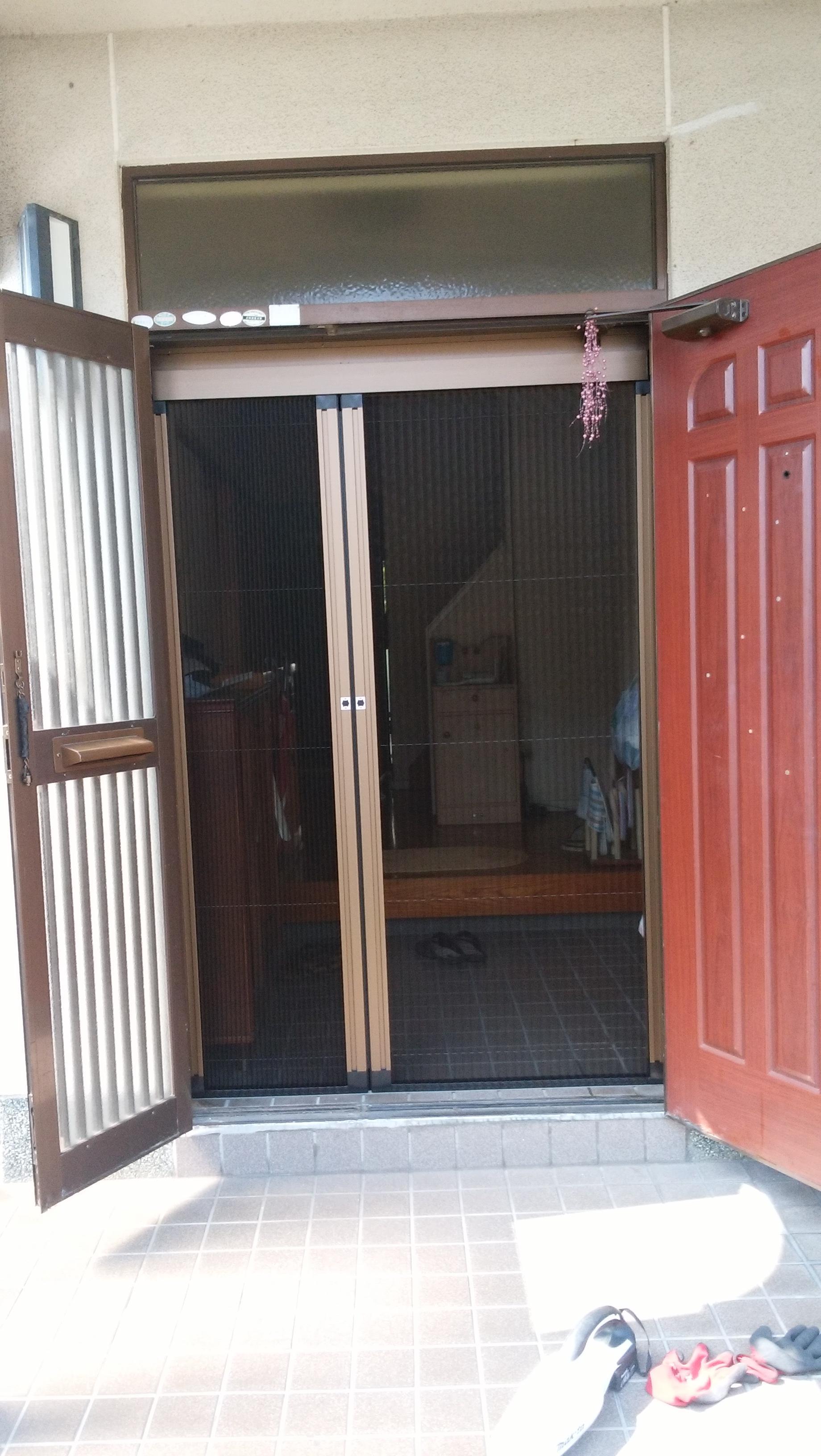 1dayリフォームで LIXIL「しまえるんです」 を設置されました。両方から開けられる親子開きのタイプで、親子ドアを全開にして風を取り入れることができるようになりました。取り外しもできるので、使わない時期は取り外し、洗うこともできます。