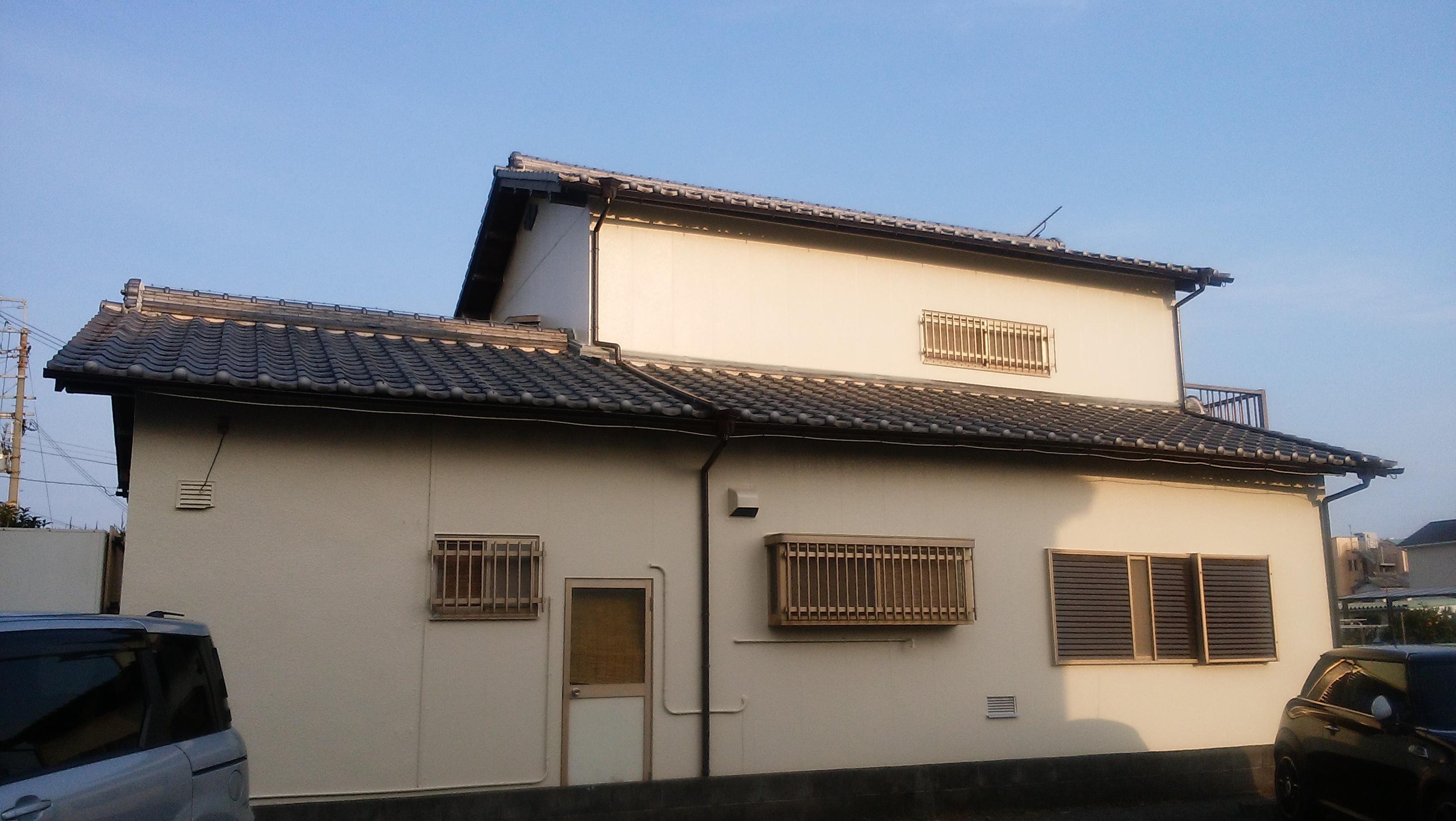 外壁塗装の劣化も有り、防水工事、屋根瓦修繕を含めて外壁塗装改修工事を提案。瓦のずれを直して屋根からの雨漏りをシャットアウト!外壁の継ぎ目、サッシまわりもしっかりコーキングで防水して再塗装しました。今は、雨漏れもなくなり、外壁も美しくお喜び頂いています。