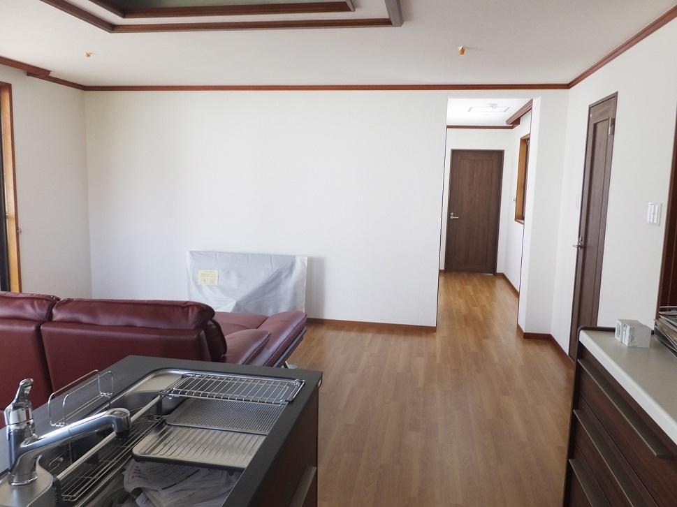 新しく壁で仕切り、大きな洋室をリビングダイニング&2つのお部屋に。LIXILのキッチンと同じシリーズの収納を設置し、コンパクトながらまとまりのあるキッチンが出来上がりました。クロスも張替、全く違うお宅のように大きく変わりました。
