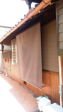 窓の外で日差しを遮る「スタイルシェード」取り付けされました。外壁の色に近い色を選ばれ、シェードを下していても違和感がありません。カーテンを開けても外から見えにくく、網戸からの風通しも良くなはりました。使わないときには軒裏にスッキリ収納。上げ下げも簡単です!