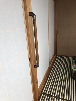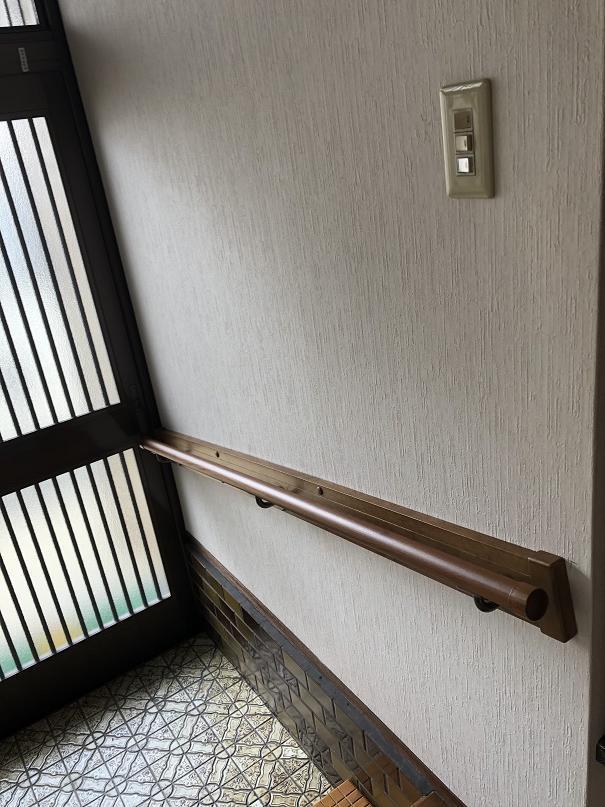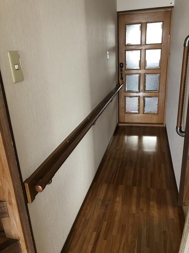 玄関や廊下、トイレに手すりを7か所取り付けました。用途や設置個所に応じて、縦型や横型の手すりを設置。手すりは使用される方の慎重に応じて設置位置を調整することが大切です。介護保険等の利用もご相談下さい。