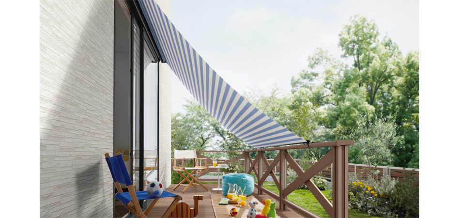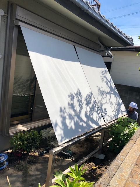 南側の大きな掃出し窓の日差し対策と、塀の外を通る人の視線対策に、何かいいものは…とお探しでした。我が社のイベント来場の際、西側窓に設置してあったシェードをご覧になり、取り付けを希望されました。