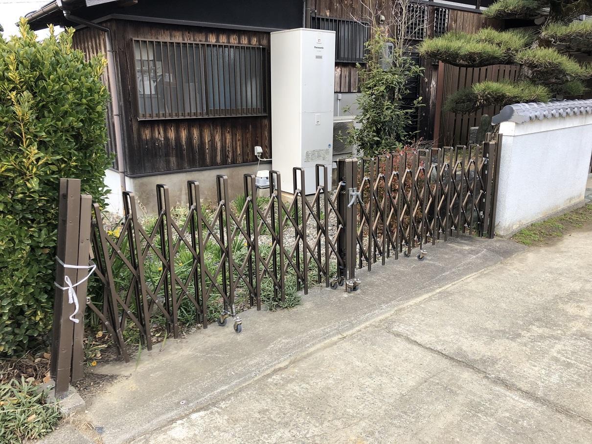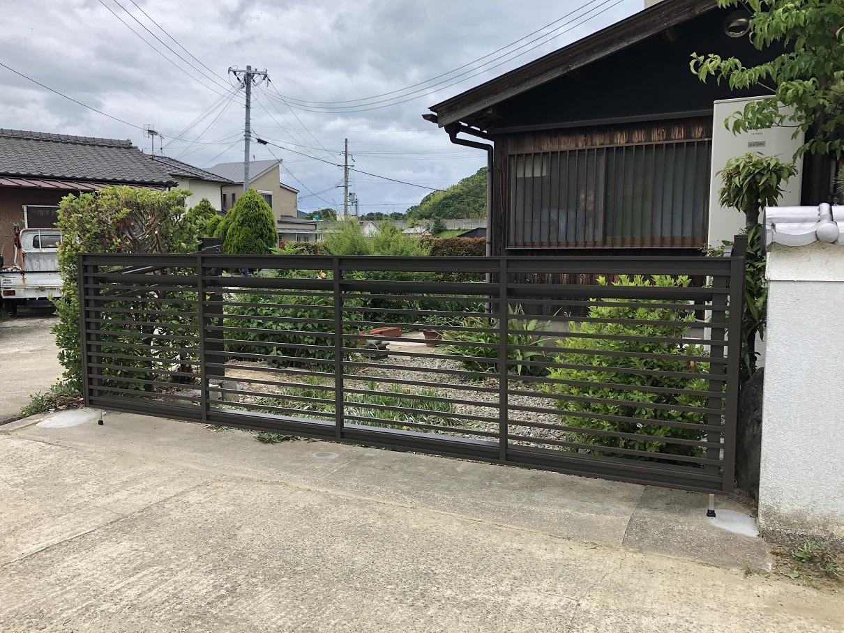 台風被害の為、壊れてしまった門扉を新しく交換しました。以前は引き戸で重く、開け閉めも手間がかかったのですが、オーバーハング式の物に交換し扱いやすくなり、見た目もスタイリッシュになりました。