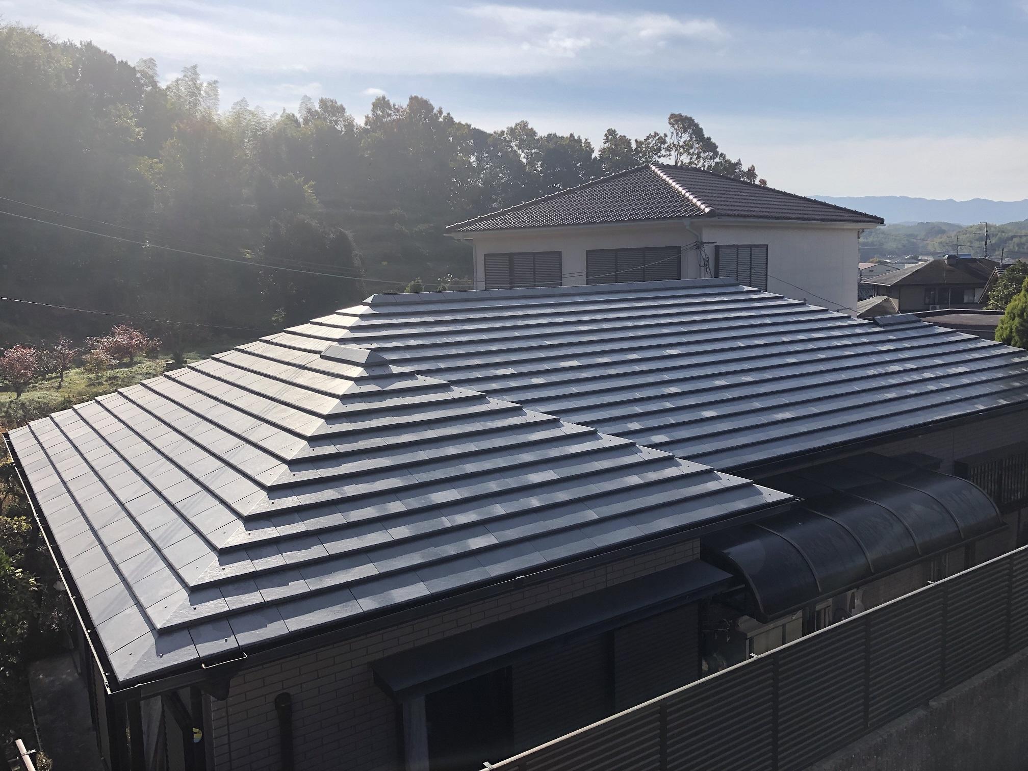 色褪せやひび割れが目立ってきた瓦の葺き替えリフォーム。割付しやすく、工事費も抑えられるので、同じセメント瓦に決定しました。以前よりも随分軽くなり、良質になっています!