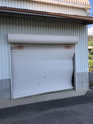 台風被害でへこんでしまったシャッターの交換リフォーム。 同じタイプの手動シャッターに交換しました。