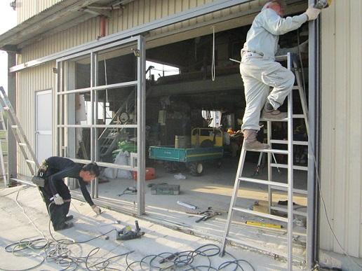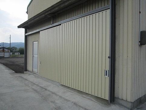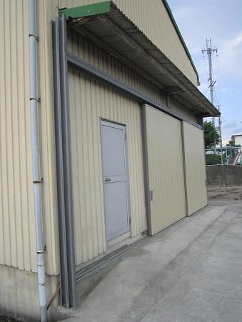 農業倉庫のシャッターの外側に引き戸を設置しました。